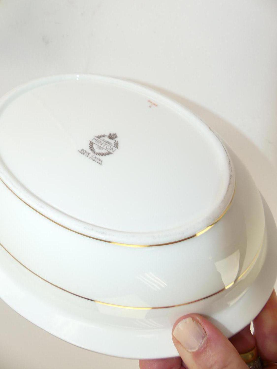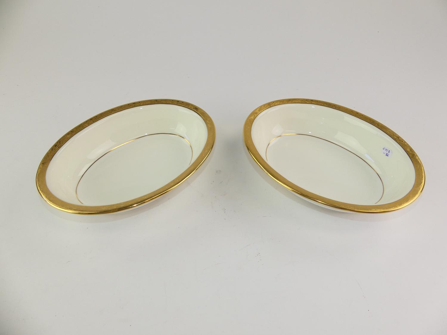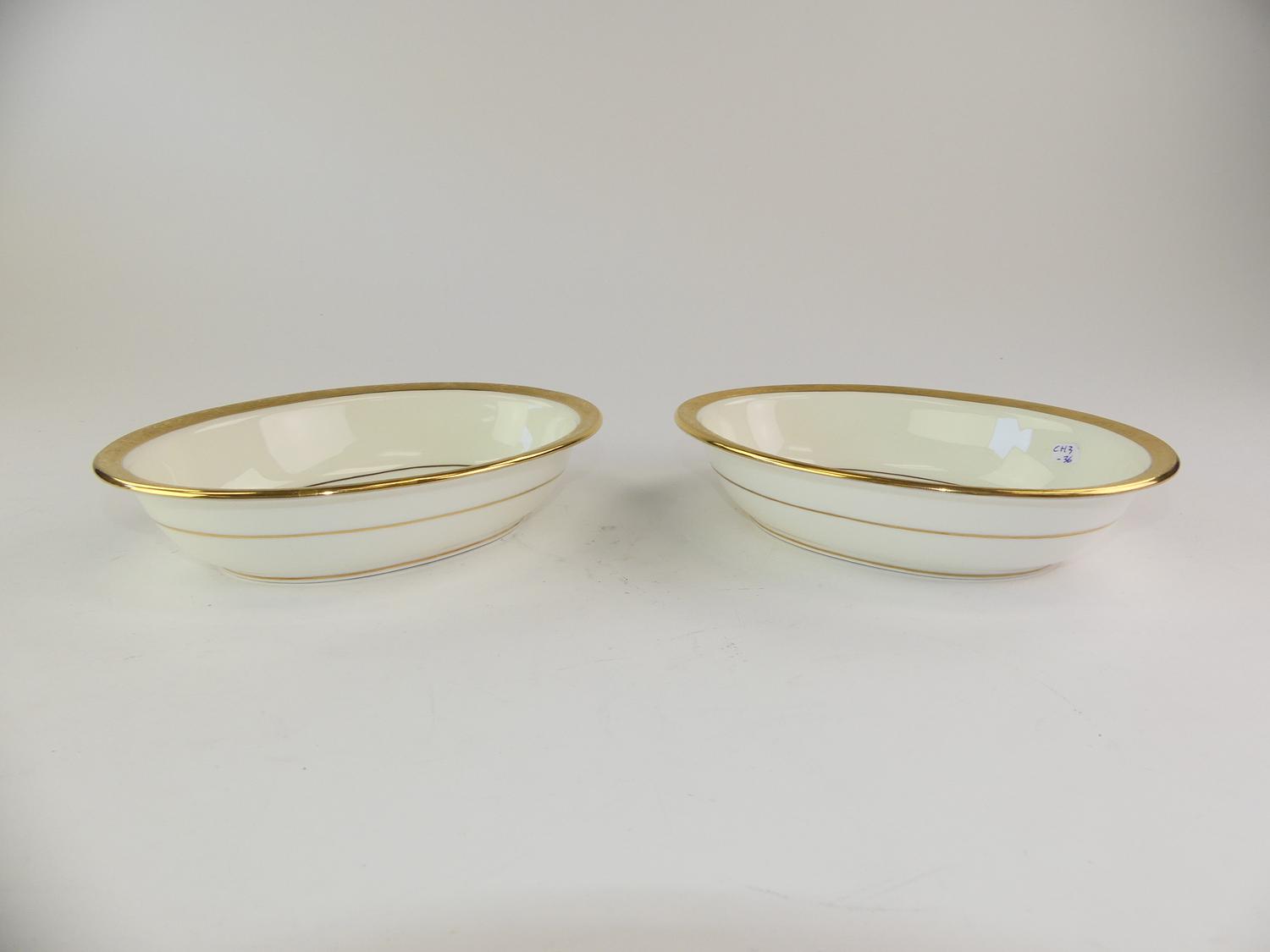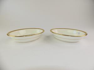 pair of minton gilt rim china serving bowls, 2" x 9 1/4" x 7"-