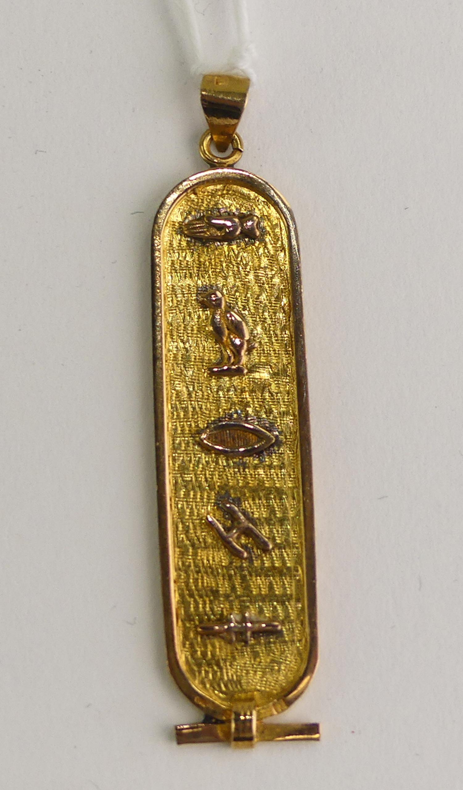 14k pink gold egyptian cartouche pendant, 4.4 grams