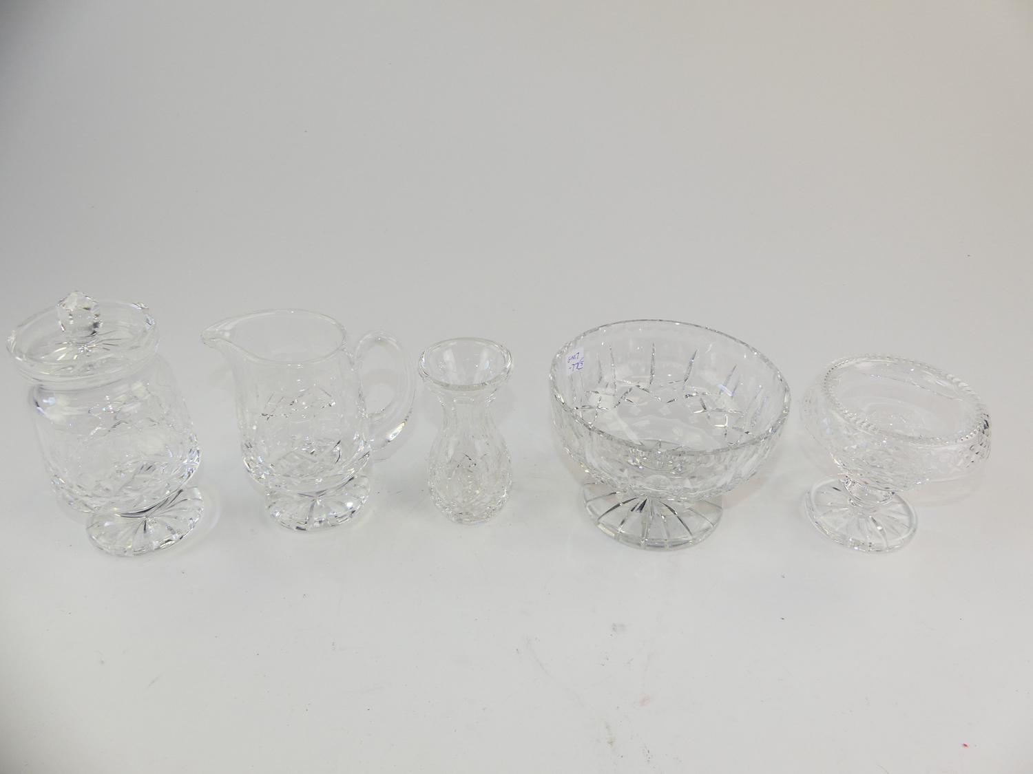 five pieces of crystal including waterford
