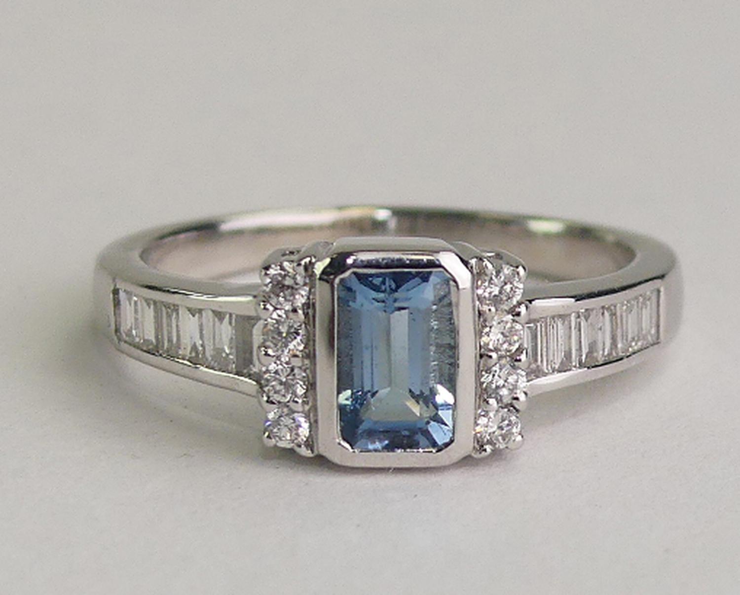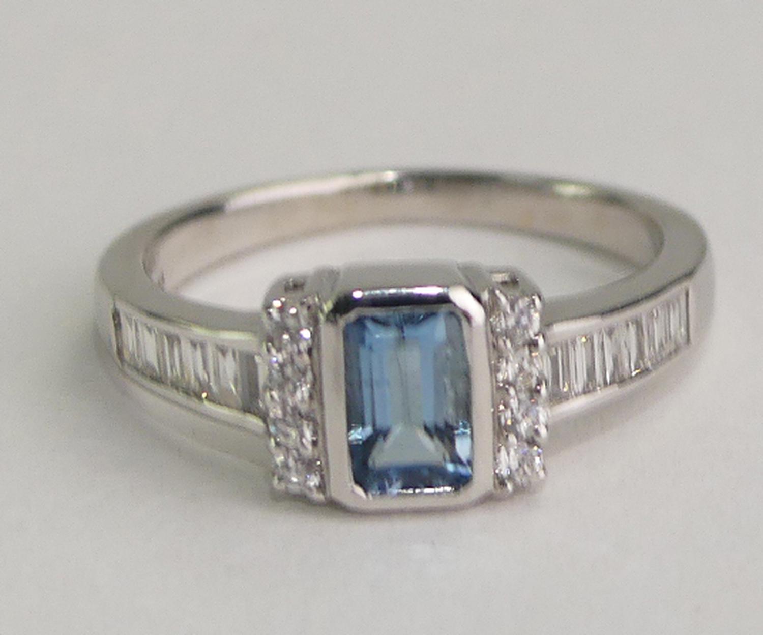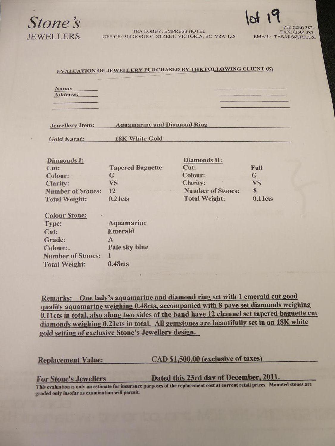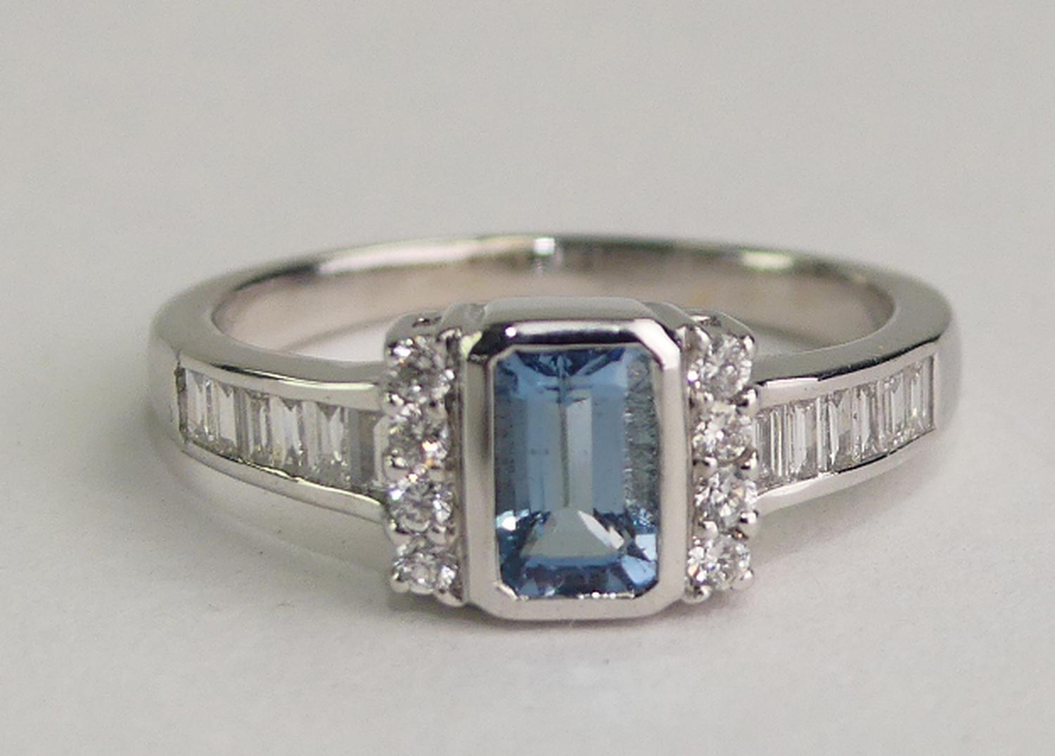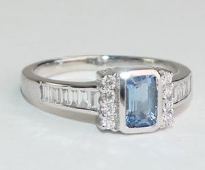 18k white gold aquamarine(.48cts) diamond(0.32cts) ring, size 5 3/4, 4.1 grams, with appraisal
