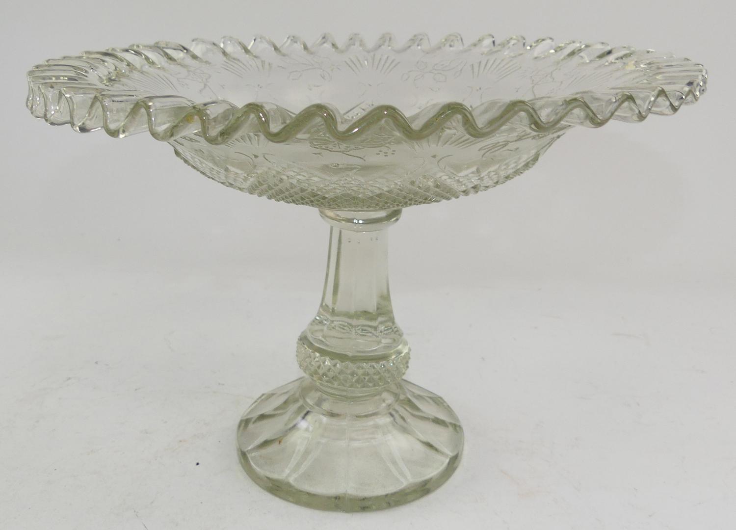 19th century pressed glass comport, 8" x 11 1/4"