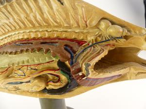 vintage american scientific model of a perch on stand, welch scientific co, chicago, 13" x 20" x 6 1/2"
