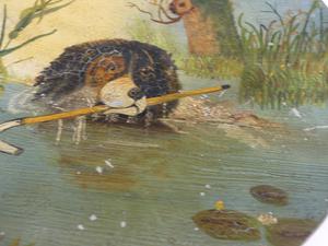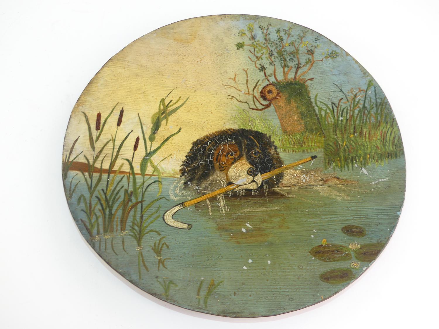 primitive painted tin wall plate "loyal friend", dia. 11 1/2"
