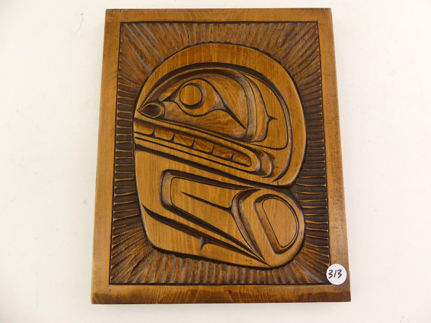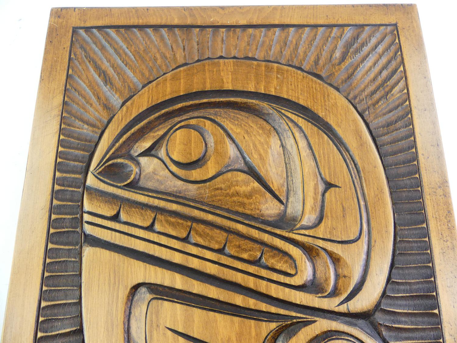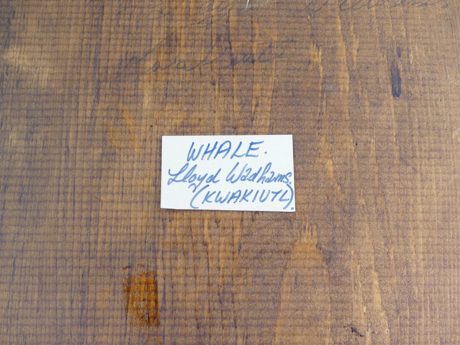 lloyd wadhams, carved cedar "whale" plaque