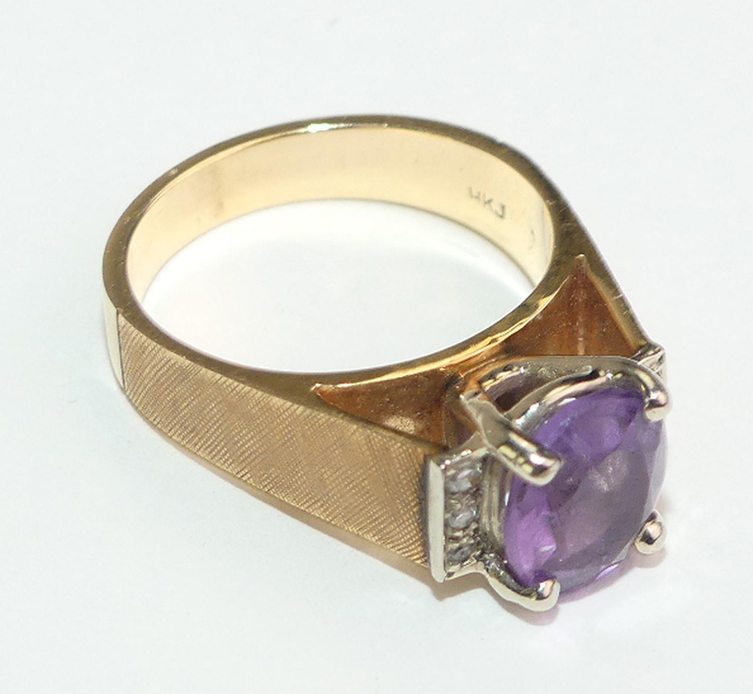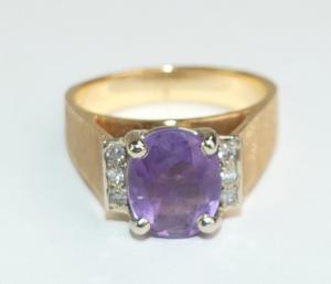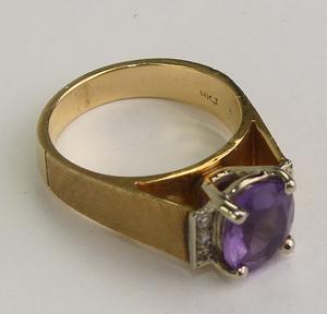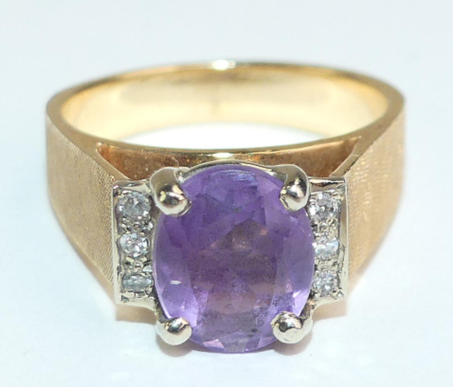 14k yellow gold amethyst diamond ring, size 6 1/2, w/a 6.5 grams