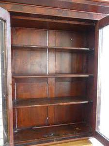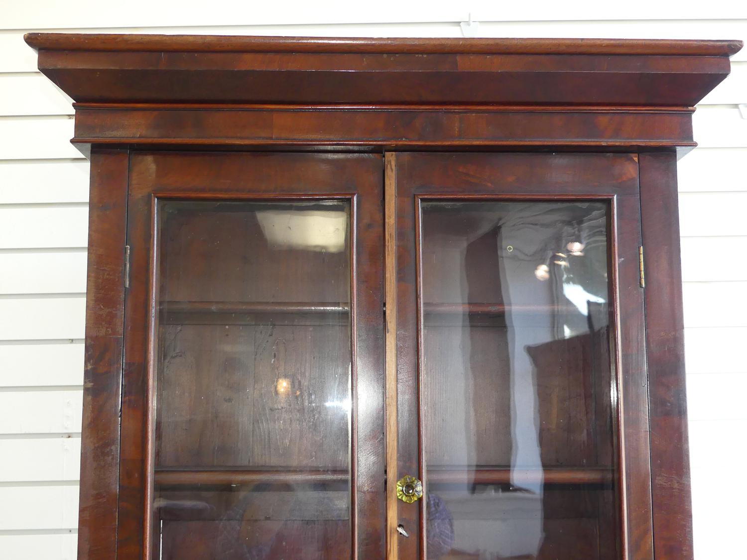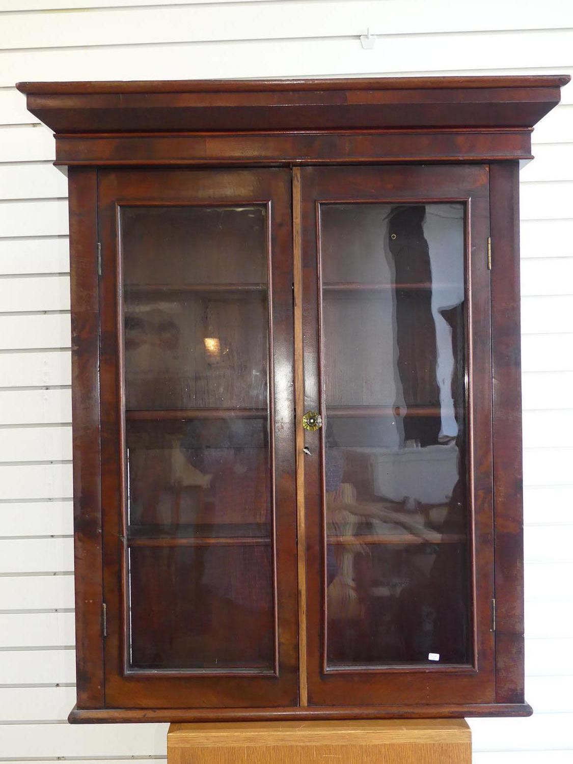 19th century glazed mahogany hanging cabinet, 38" x 32" x 11"