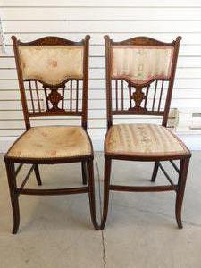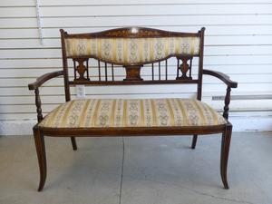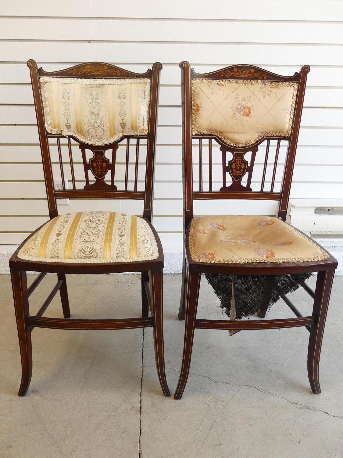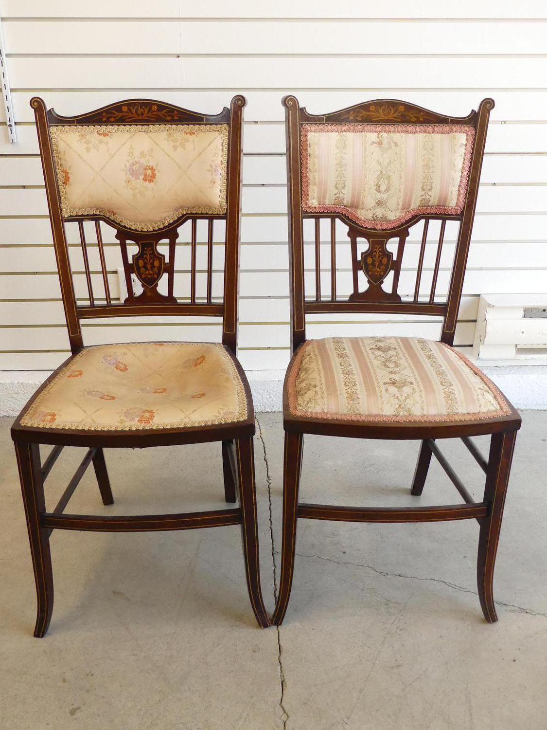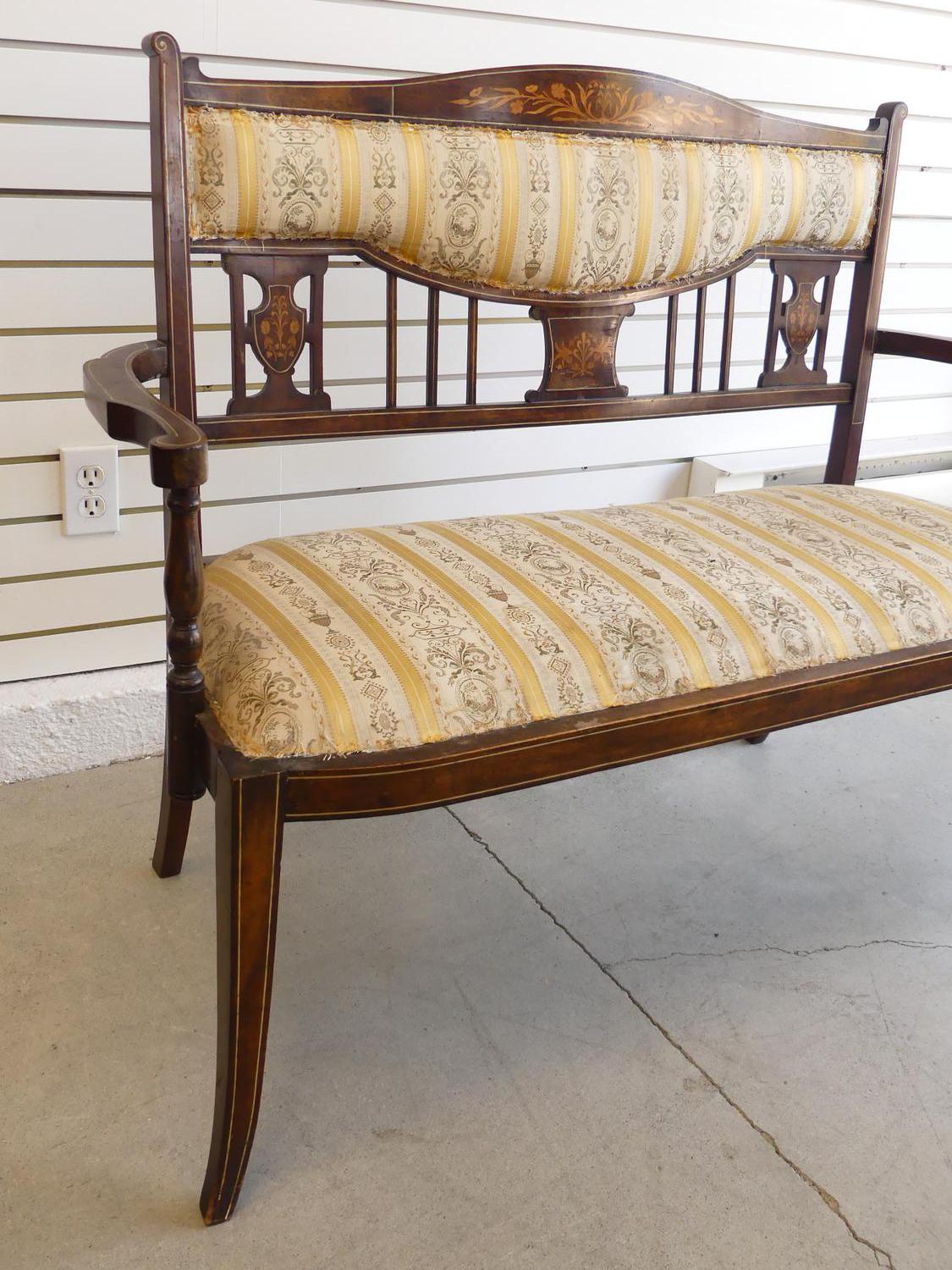 edwardian inlaid mahogany parlor suite, including setee and four side chairs, circa 1900s