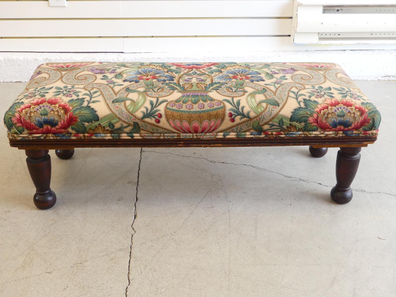 late 19th century upholstered fire bench, 12" x 35" x 14"