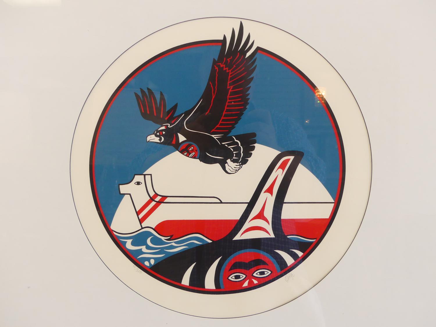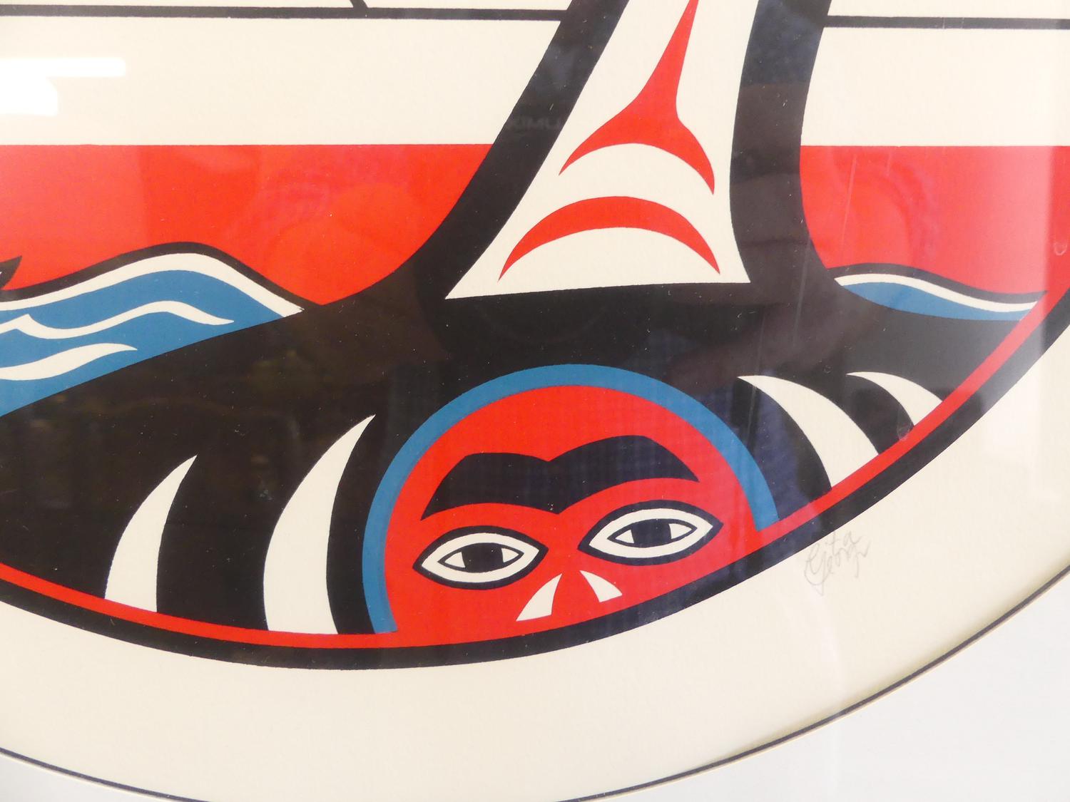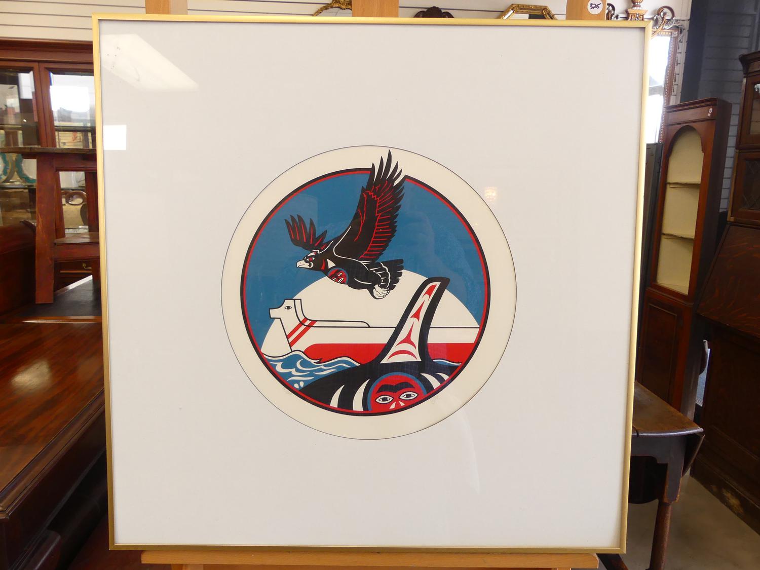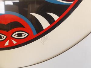 indistinctly signed george, limited edition print #94/325, 14" dia., "eagle and whale"