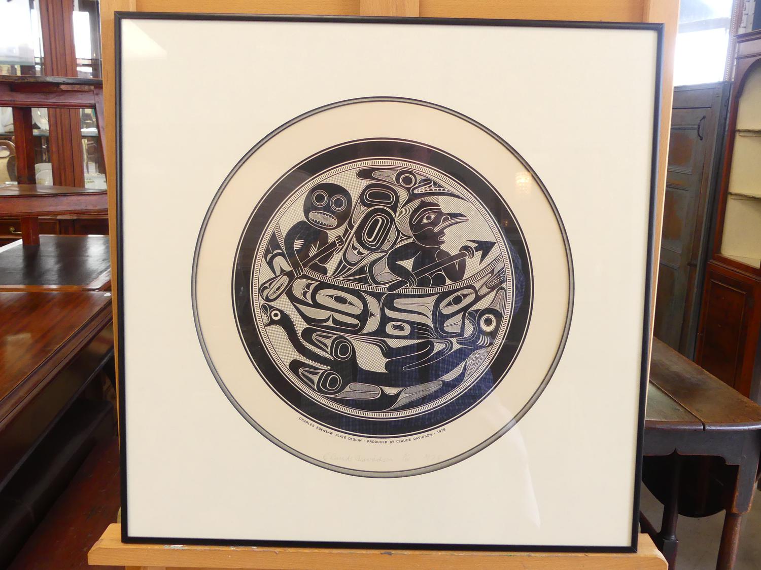 claude davidson, limited edition print #5/150, d.1978, dia. 15", "charles edenshaw plate design"