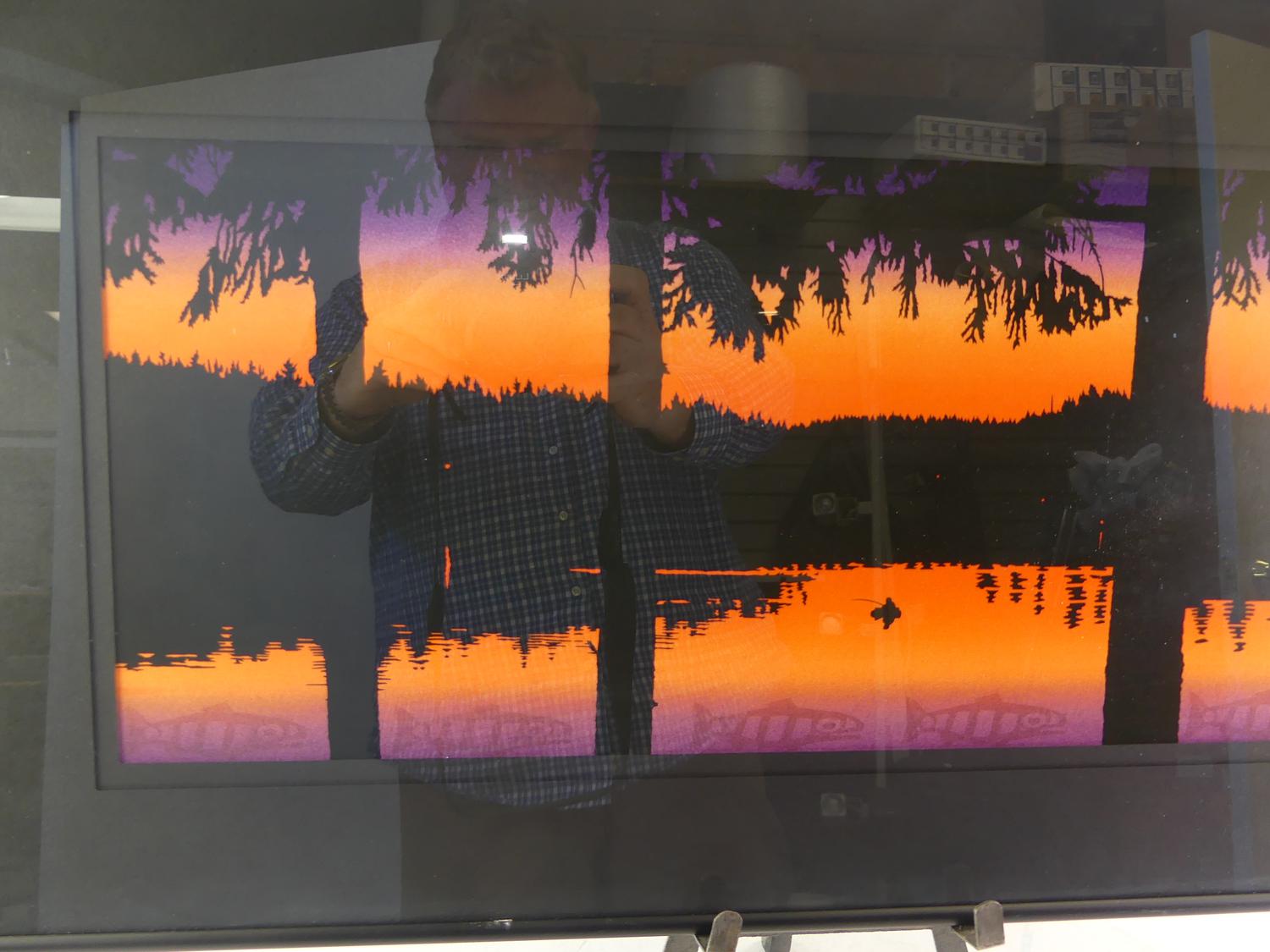 roy henry vickers, framed colour print, 15 3/4" x 29 1/2", "untitled fisherman at sunset"