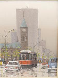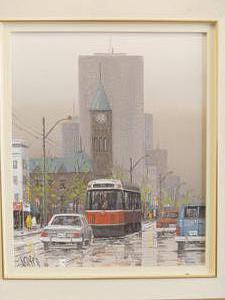 ben jensen, oil on canvas board, 12" x 10", "toronto street scene"