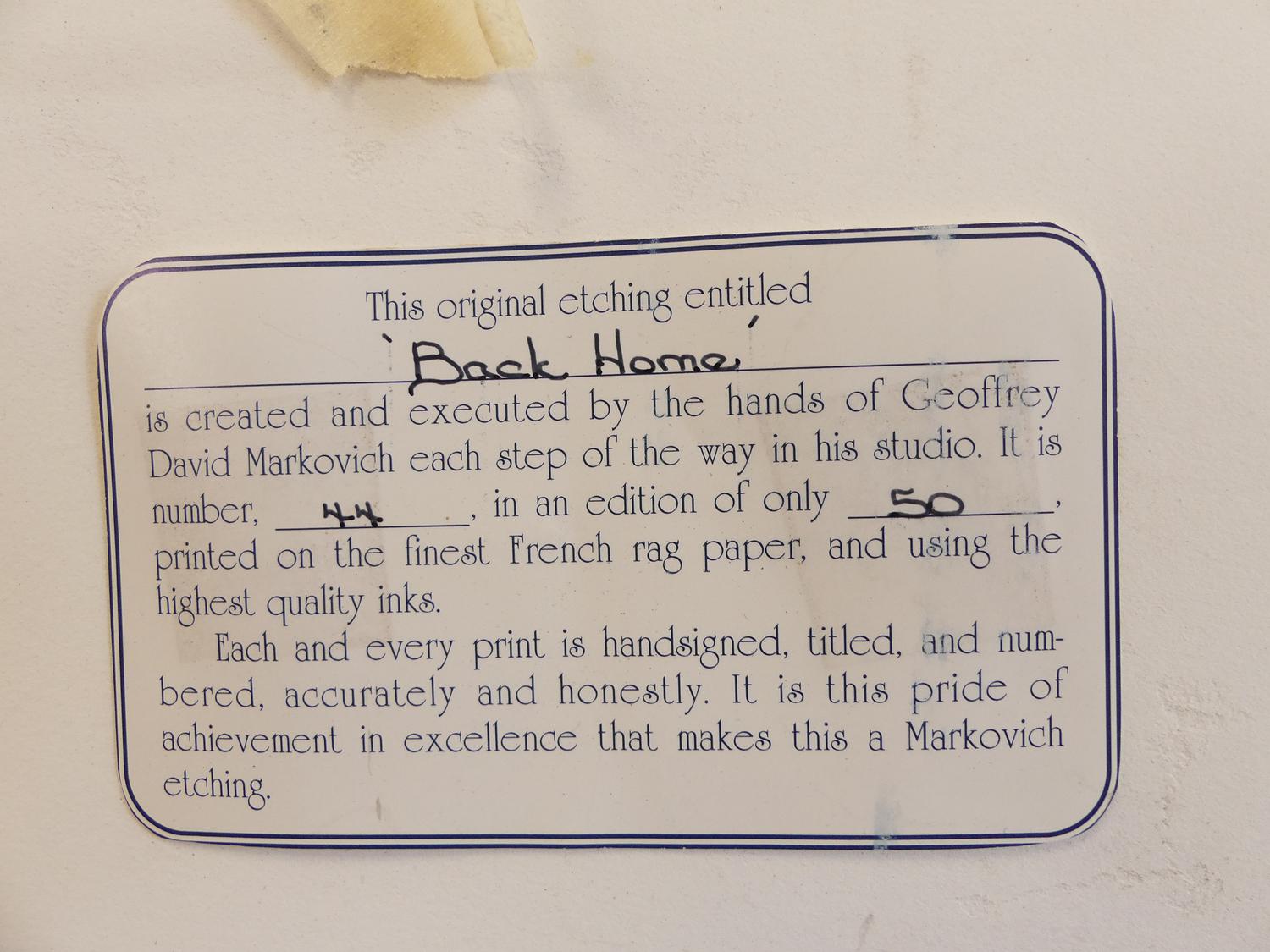 geoffrey david markovitch (b.1946), etching in colours #44/50, 4" x 5", "back home"