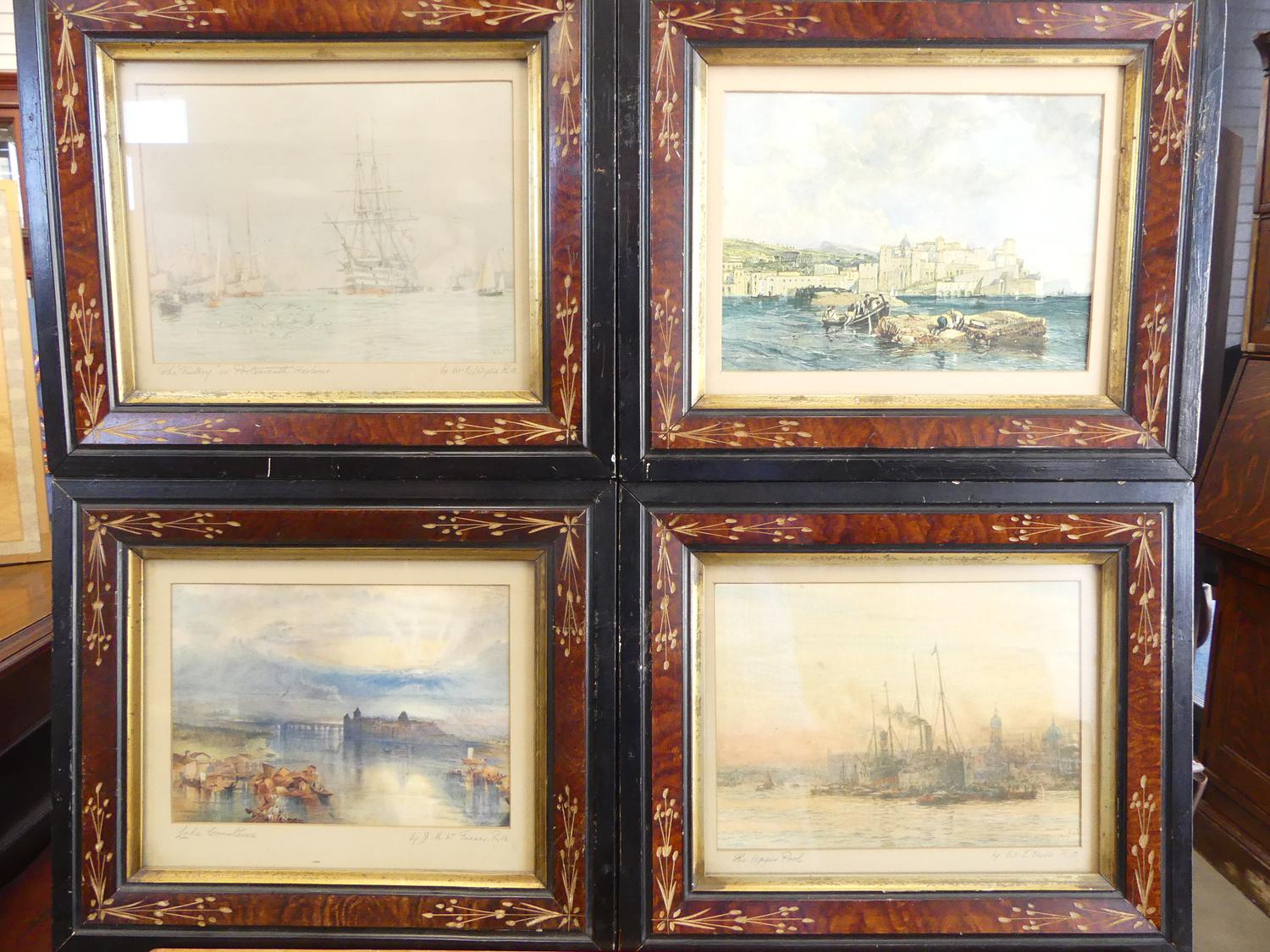 four antique frames 11 1/2" x 13 1/2", with prints after j.m.w. turner and w.l. wylie