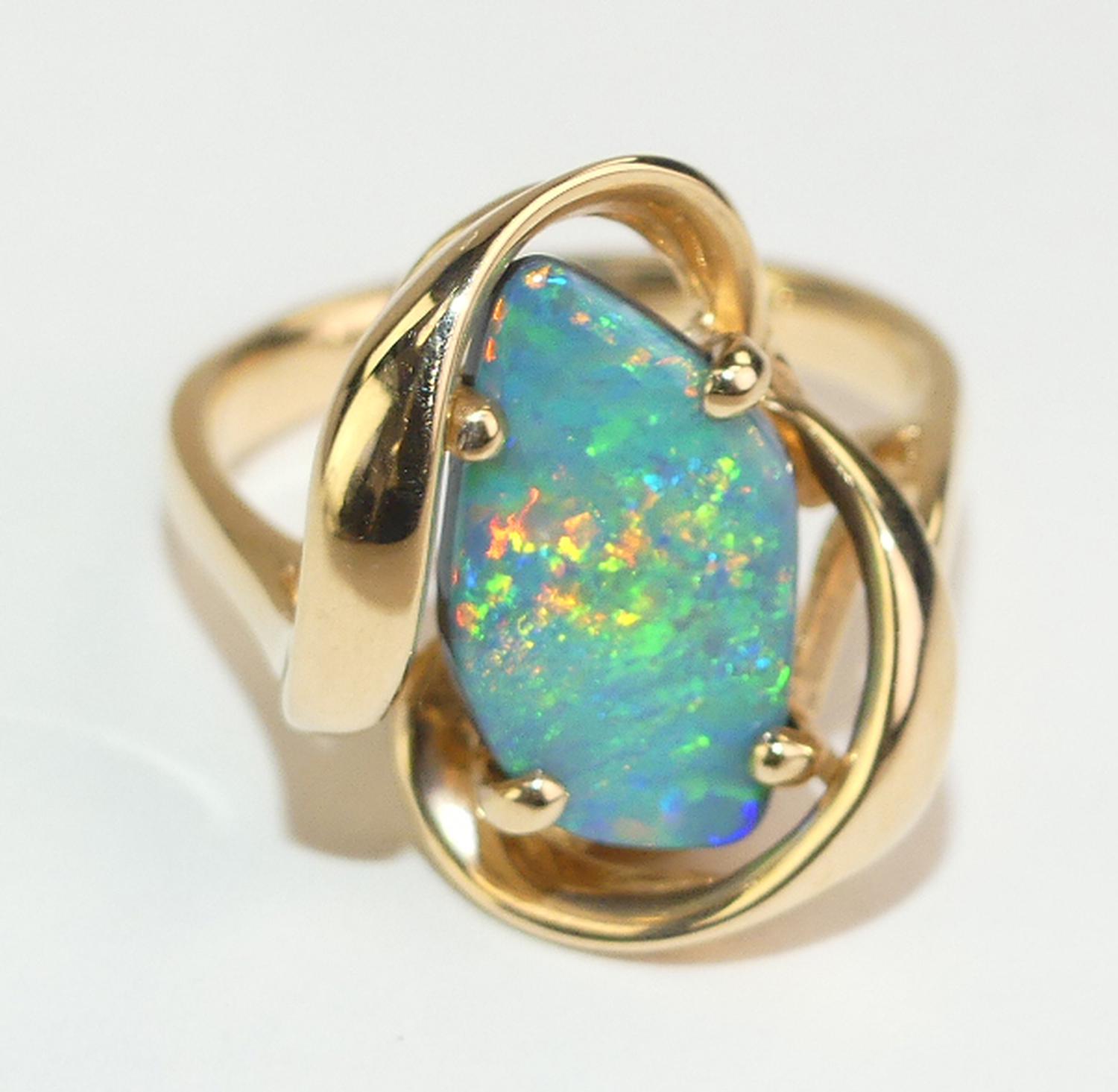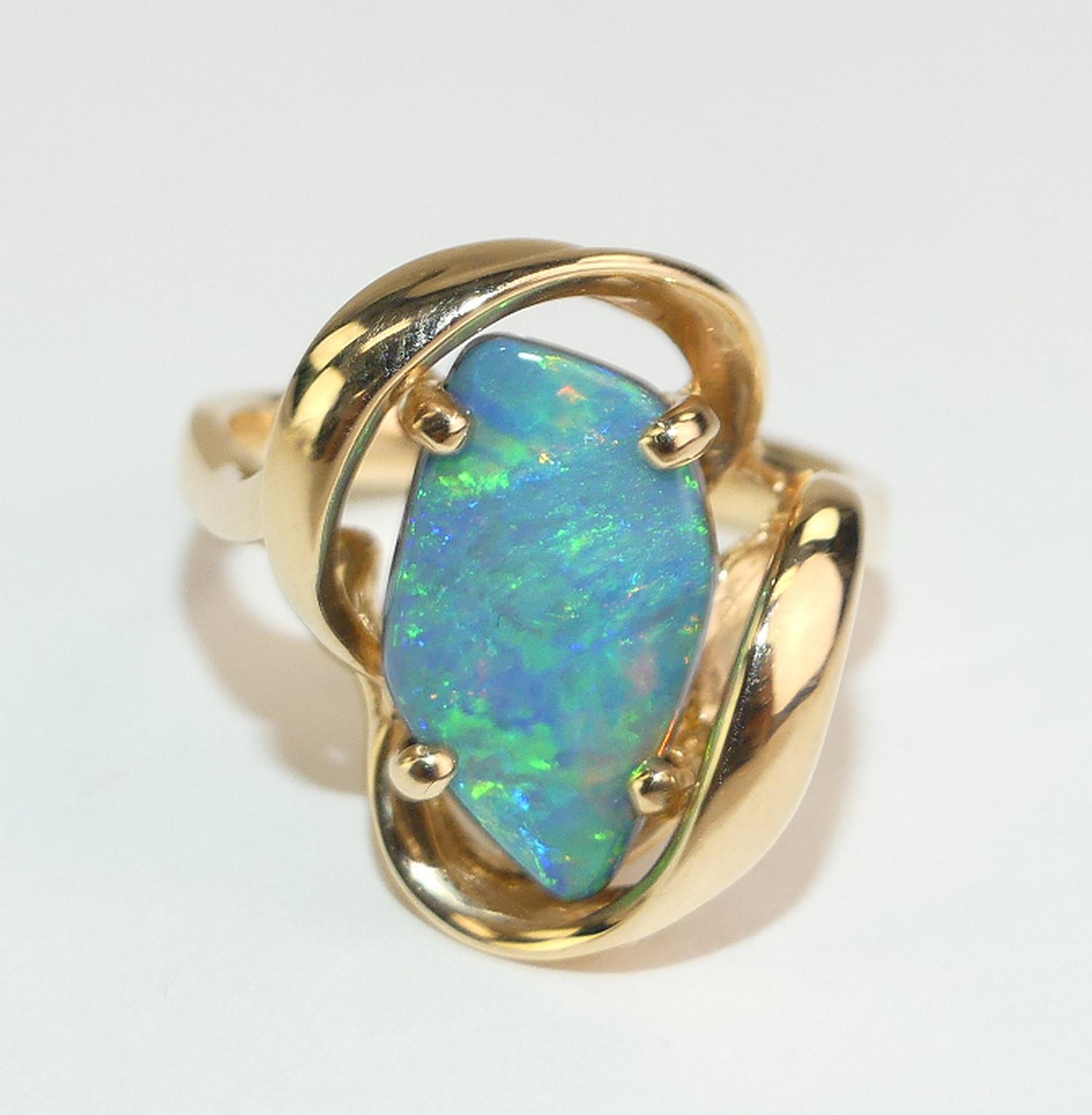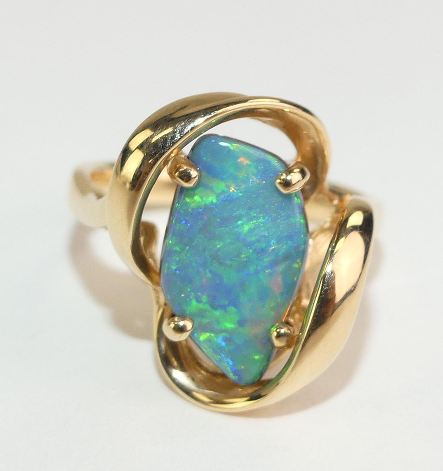 14k yellow gold opal doublet ring, size 6 1/4, w/a 5 grams