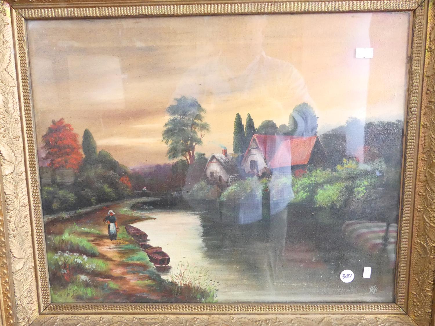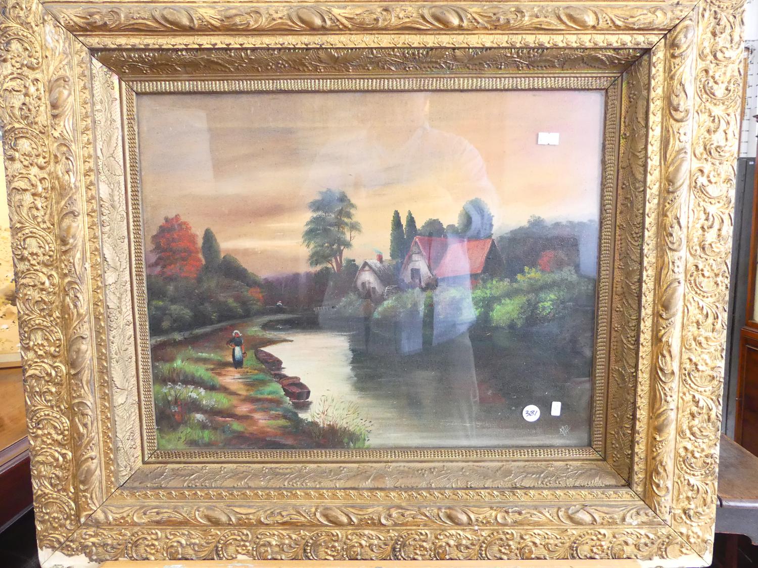 antique gilt framed painting, overall 25" x 30"