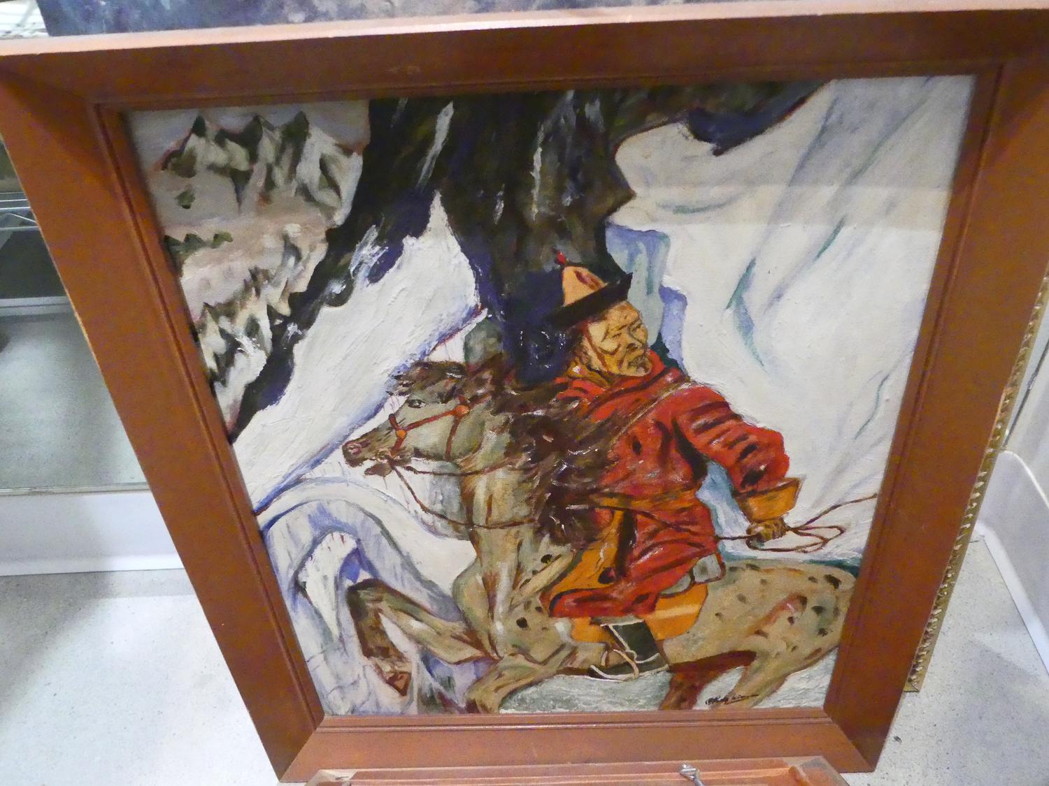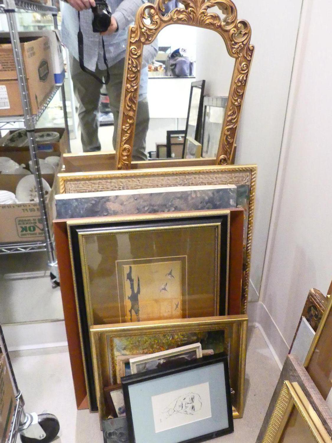 lot of paintings and prints, and mirror