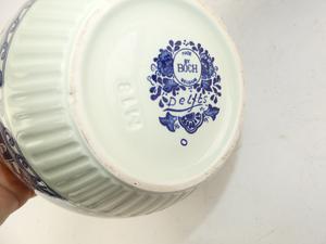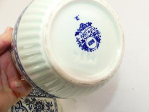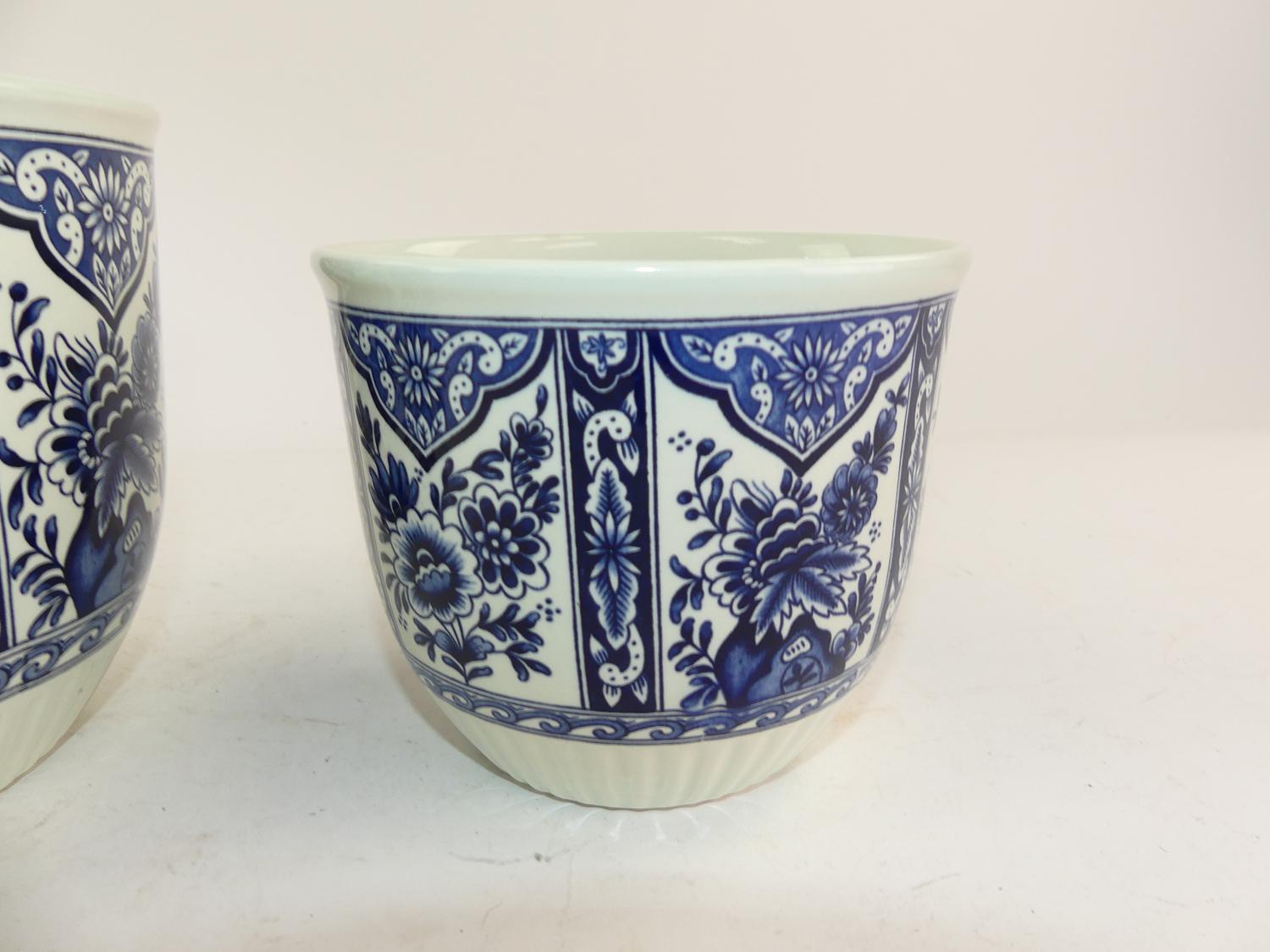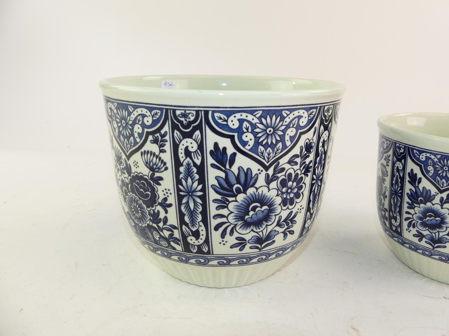 two graduated delft blue and white planters, largest 5 3/4" x 7"