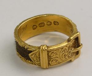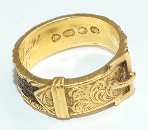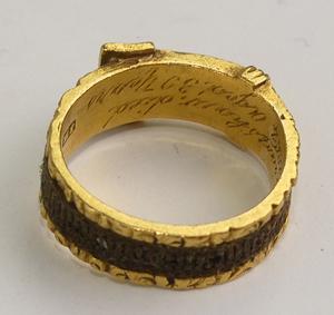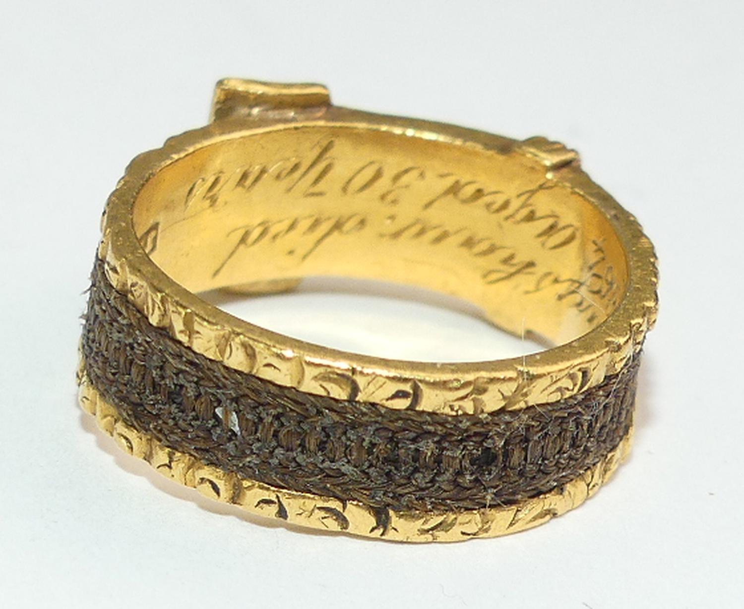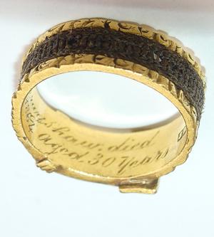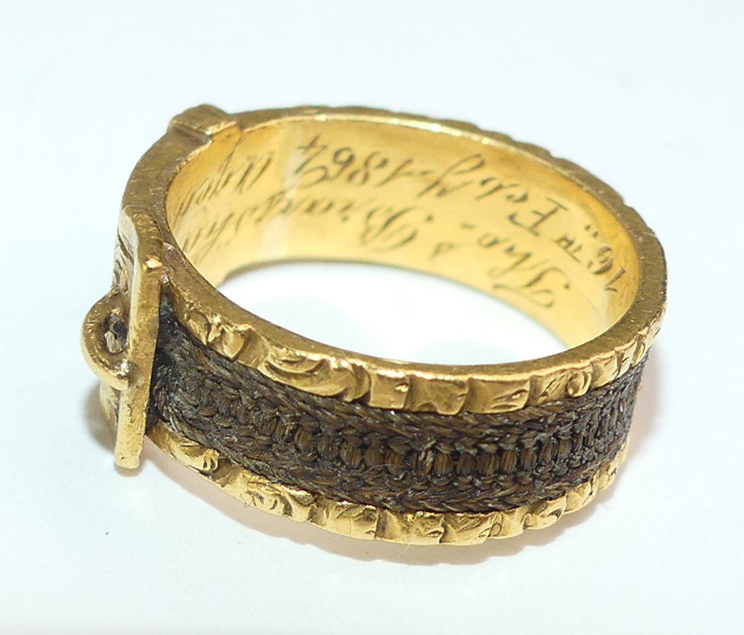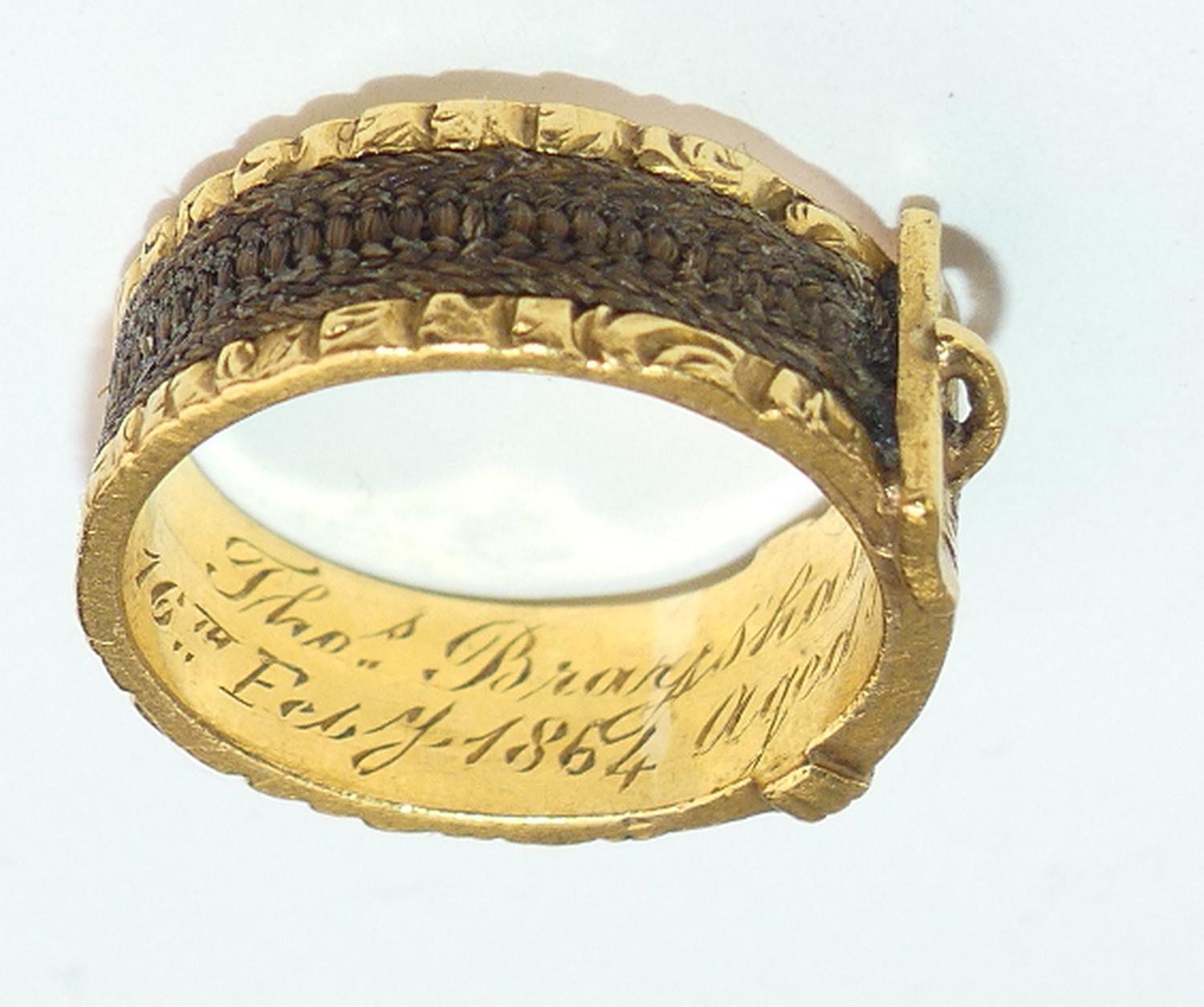 Interior reads Thomas Brayshaw died 16th of Feb 1864, aged 30. English hallmarks, 22K.