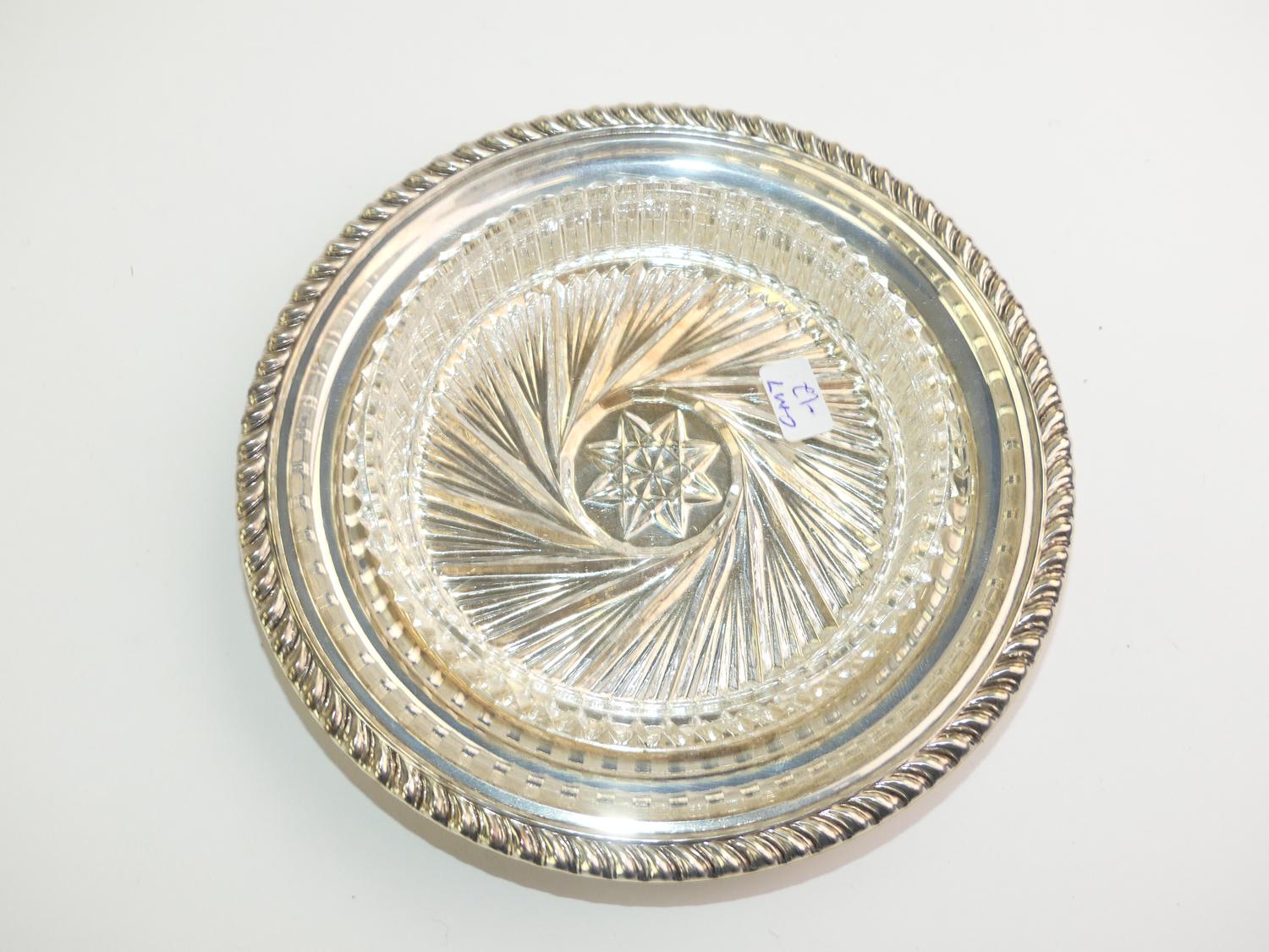 birks sterling silver and crystal bottle coaster, diameter 5 3/4"