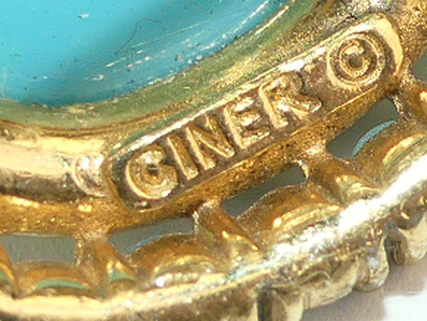 signed vintage ciner glass pin