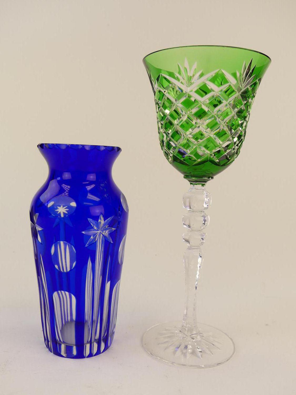 bohemian stemglass and vase, ht. 8 3/4" and smaller, chips