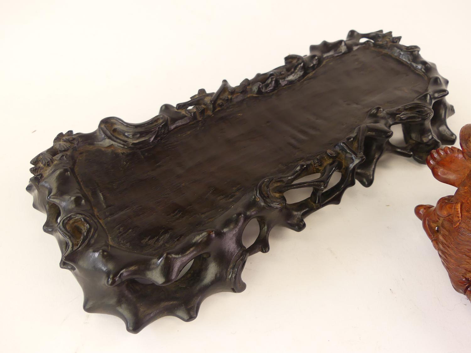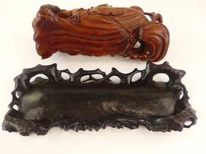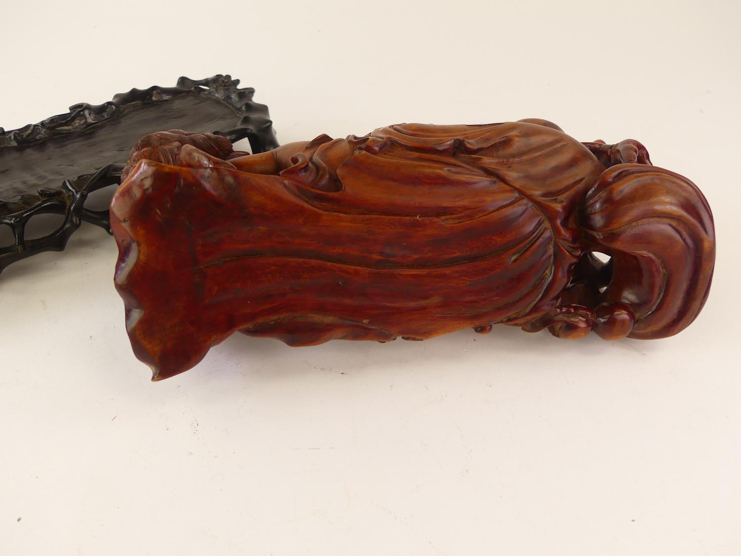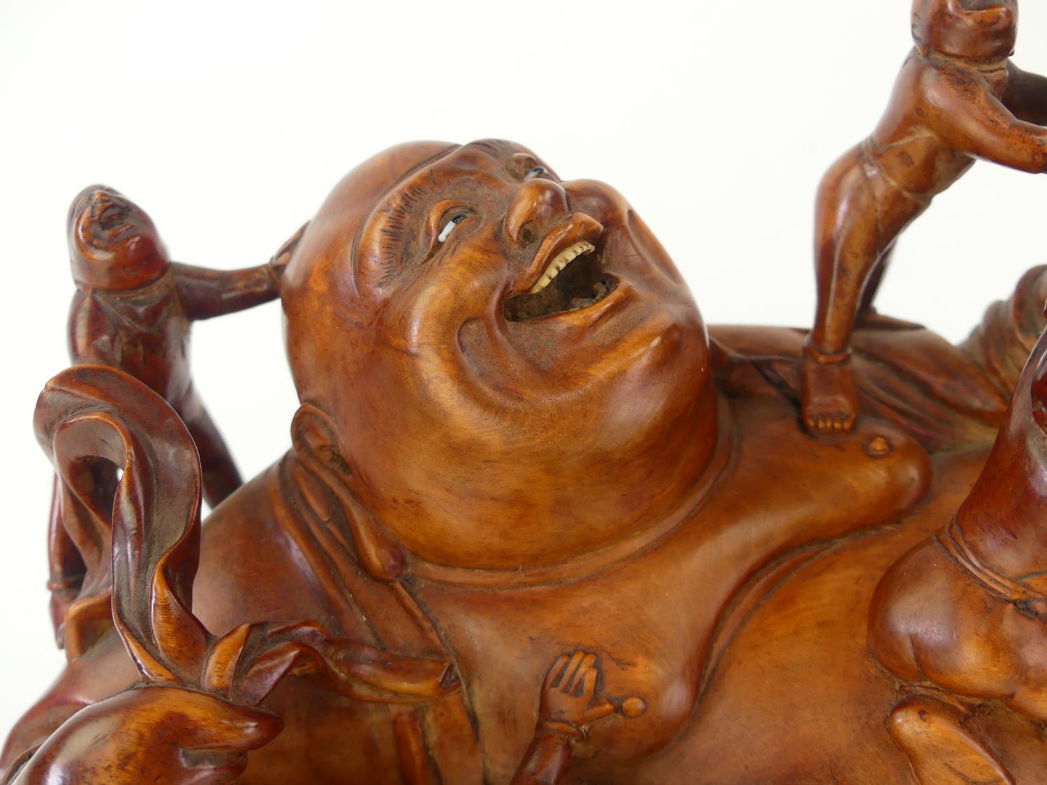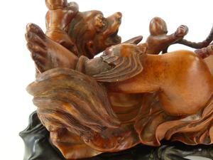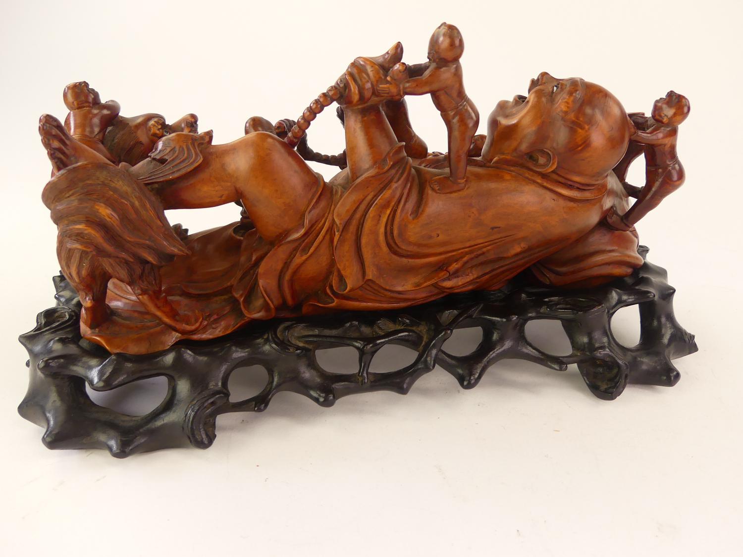 chinese carved buddha on stand, 6" x 11 1/2" x 5"