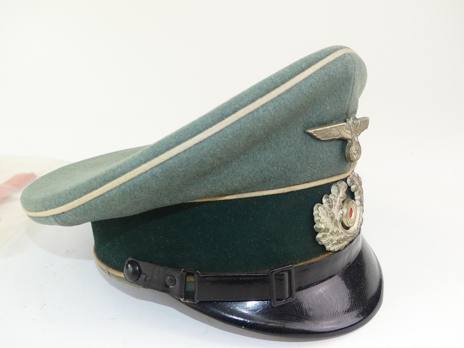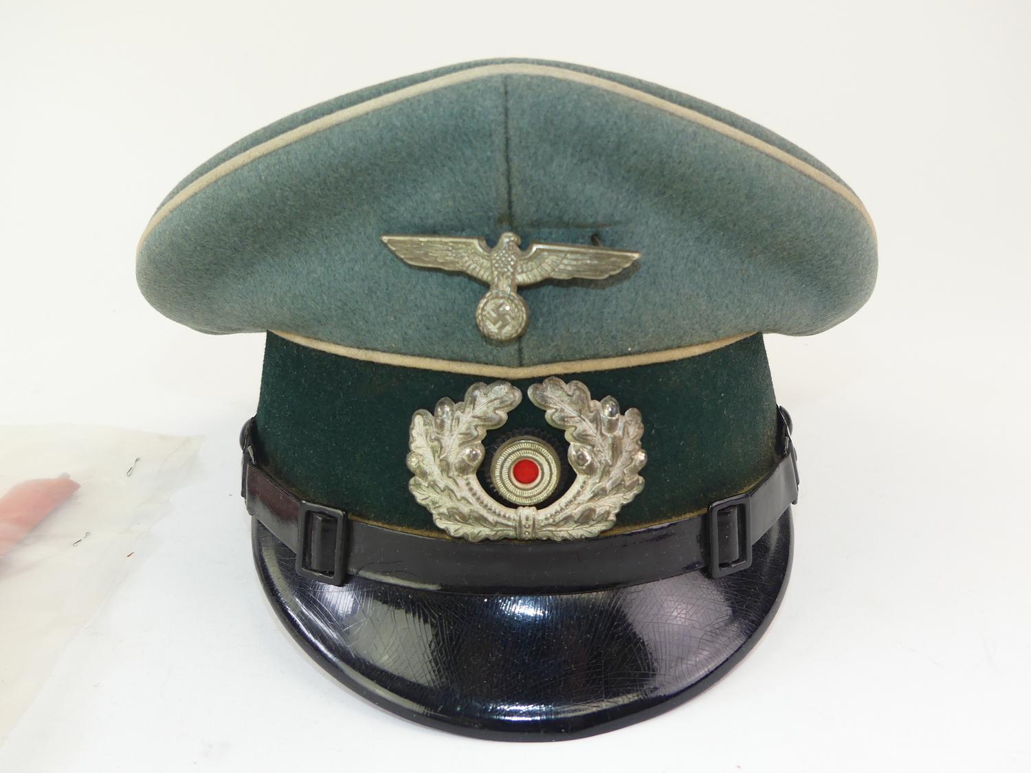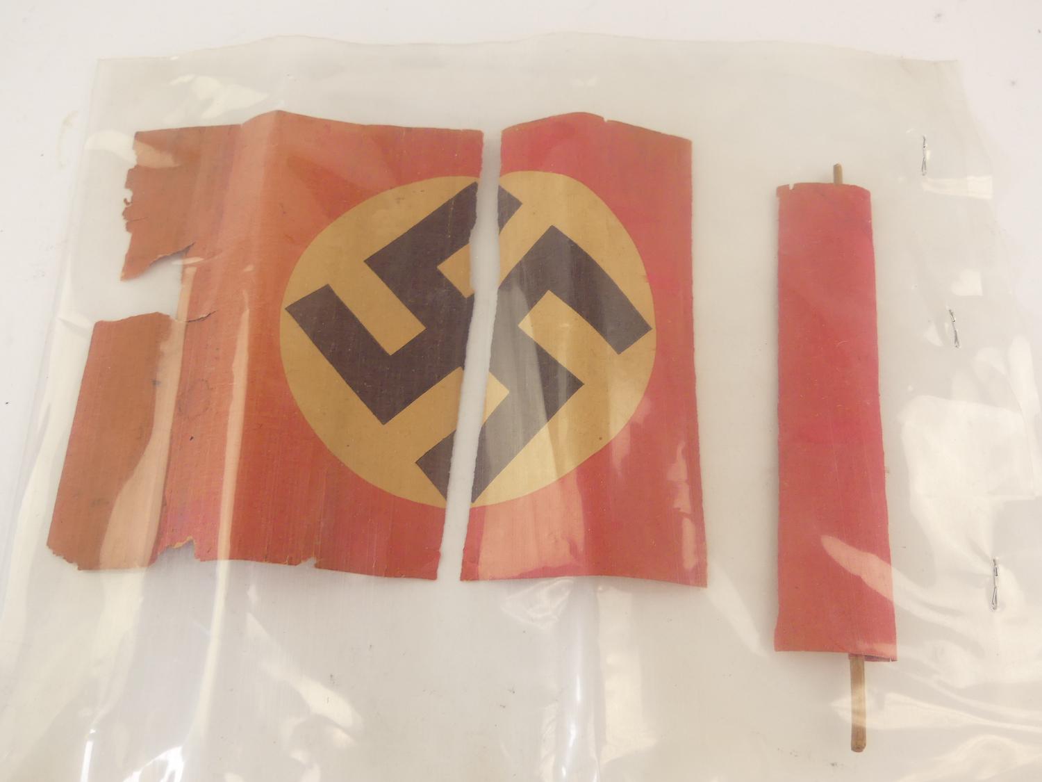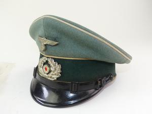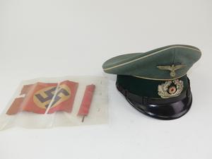 nazi unform hat and old paper flag