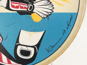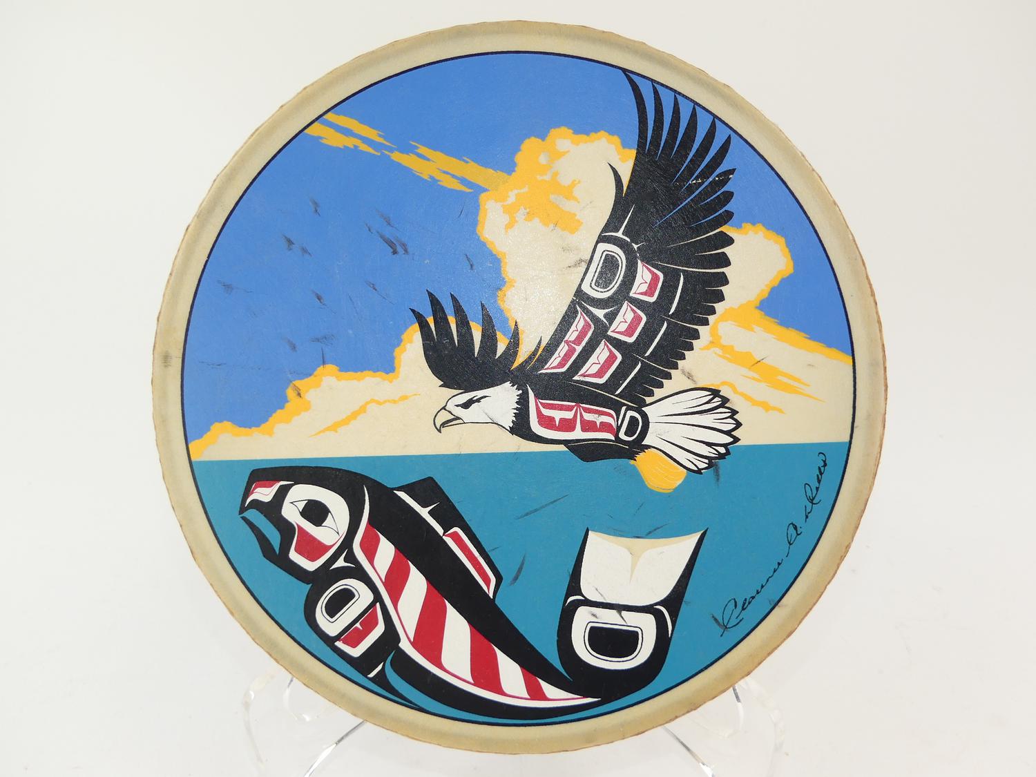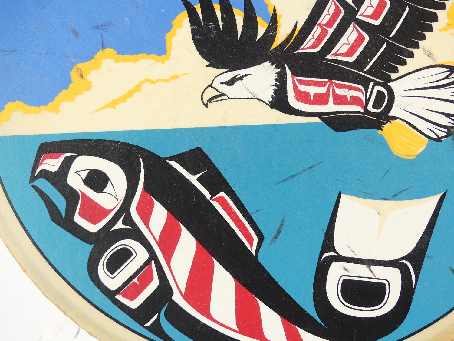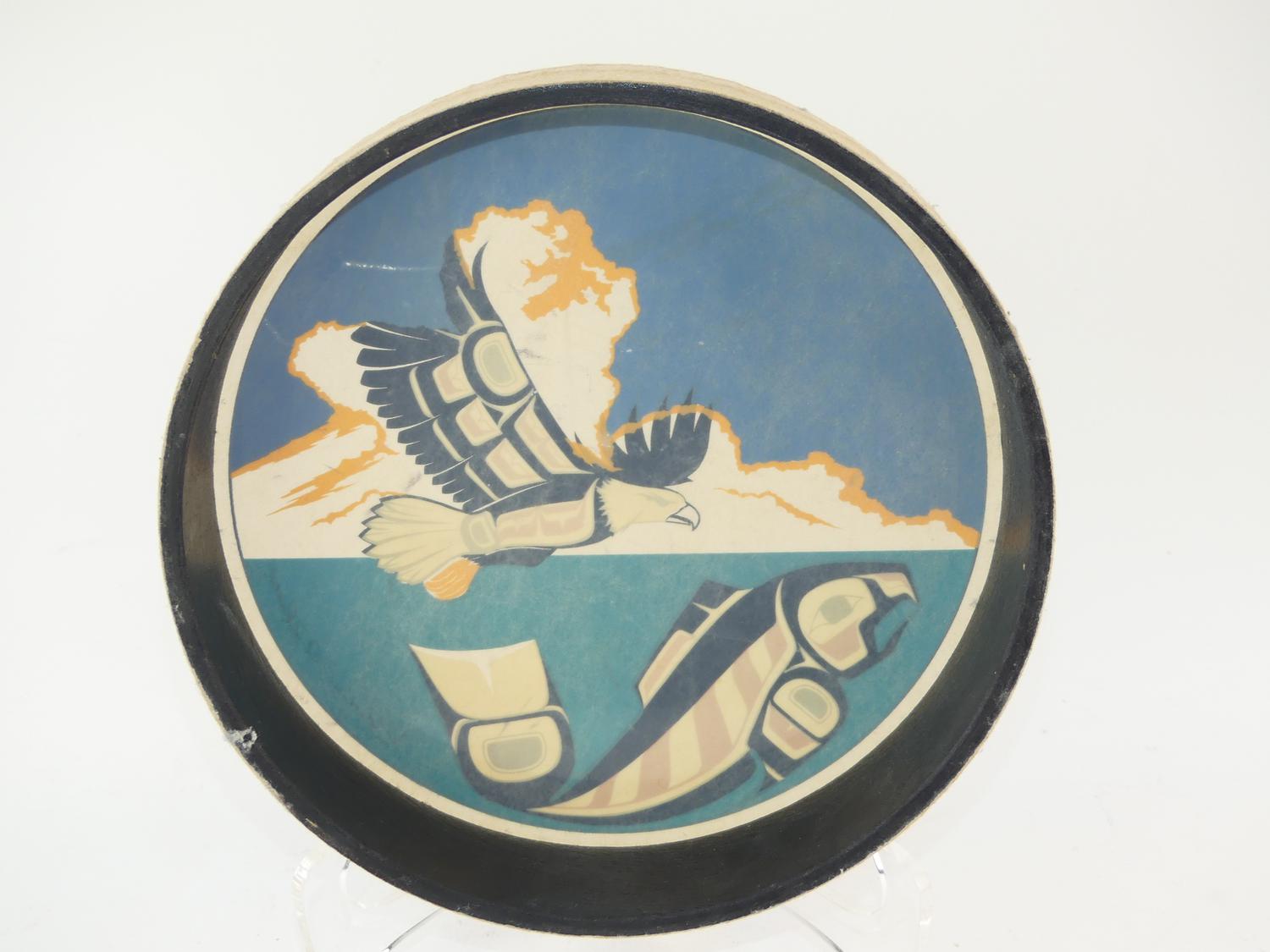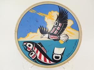 clarence a. wells, "eagle and salmon" drum, dia. 10"