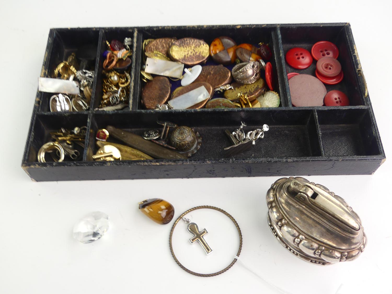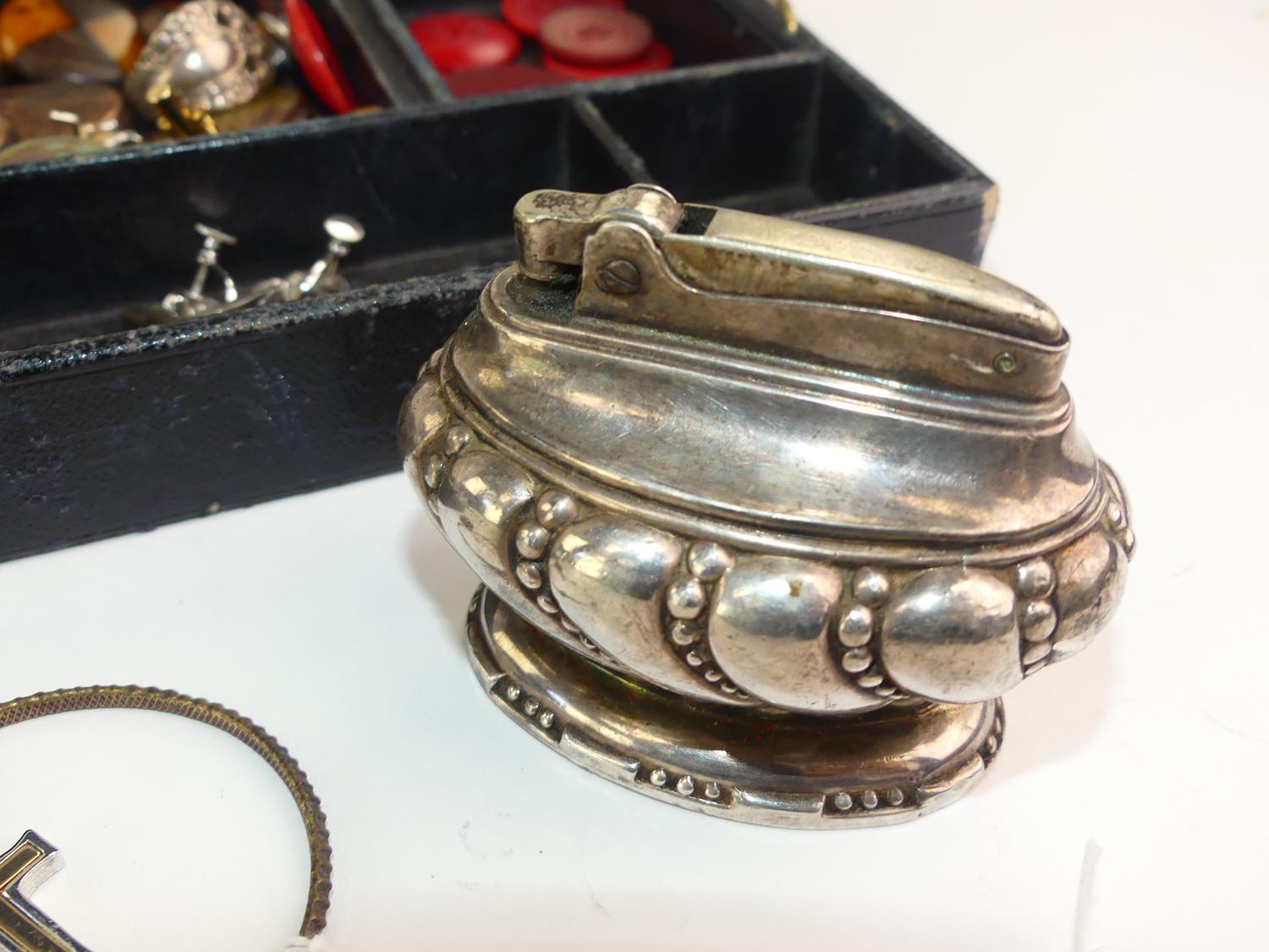 tray with misc jewelery parts ,sp art deco ronson lighter