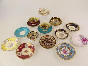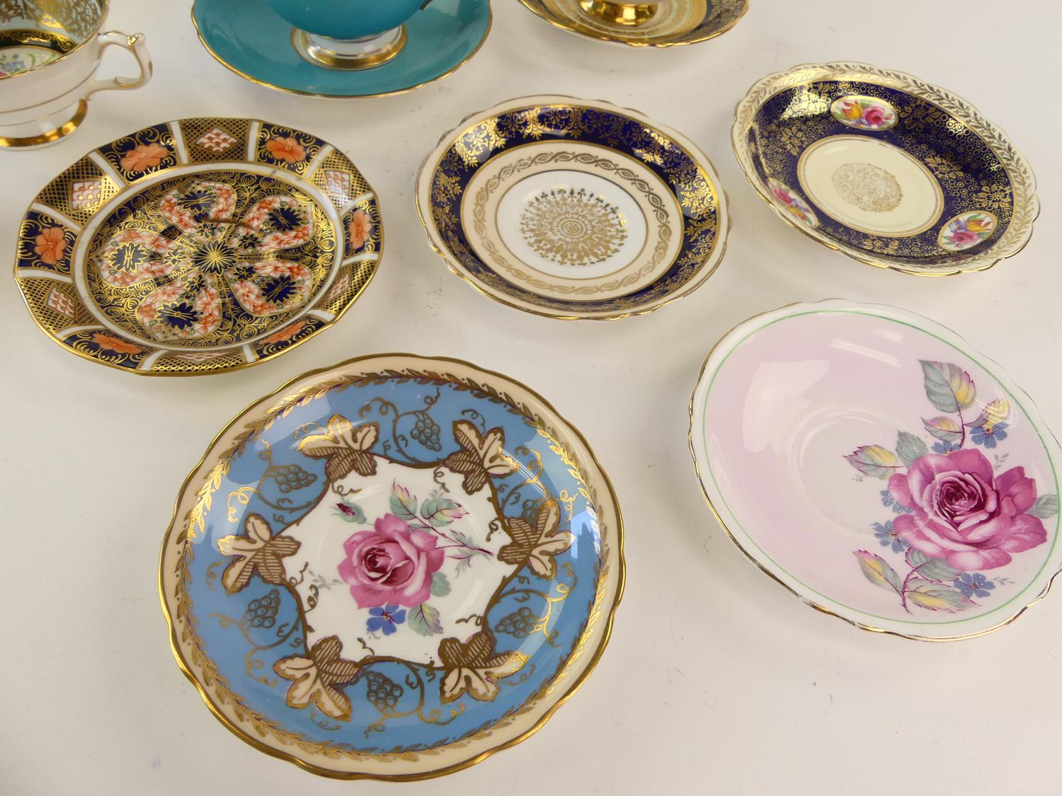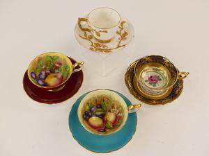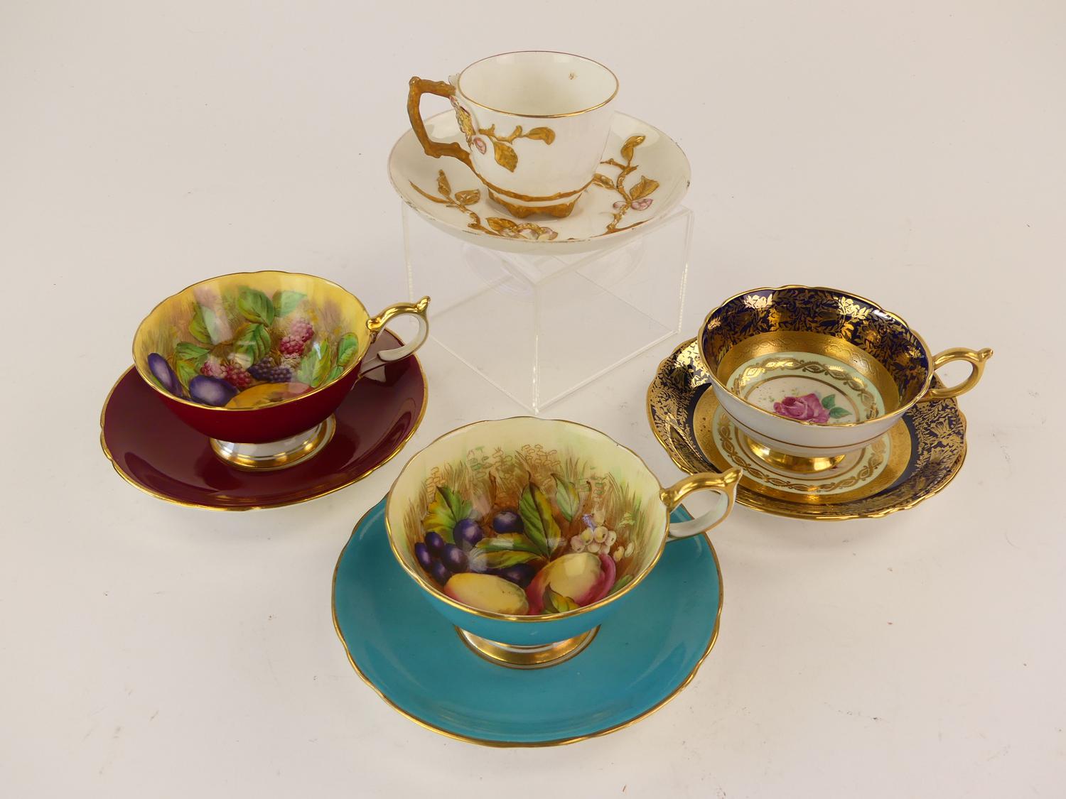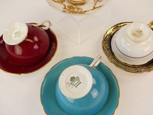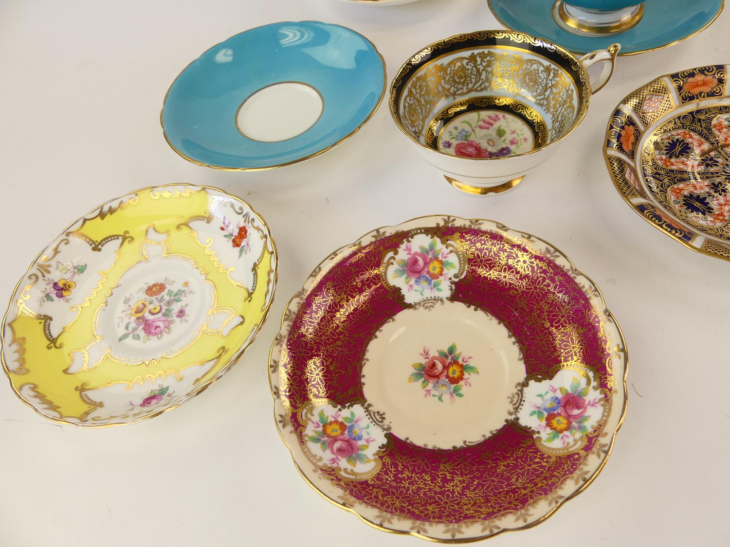 four tea cups and saucers including aynsley together with misc. saucers and a cup