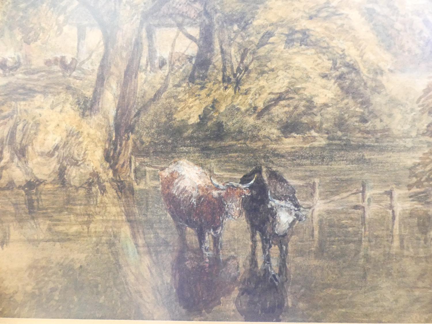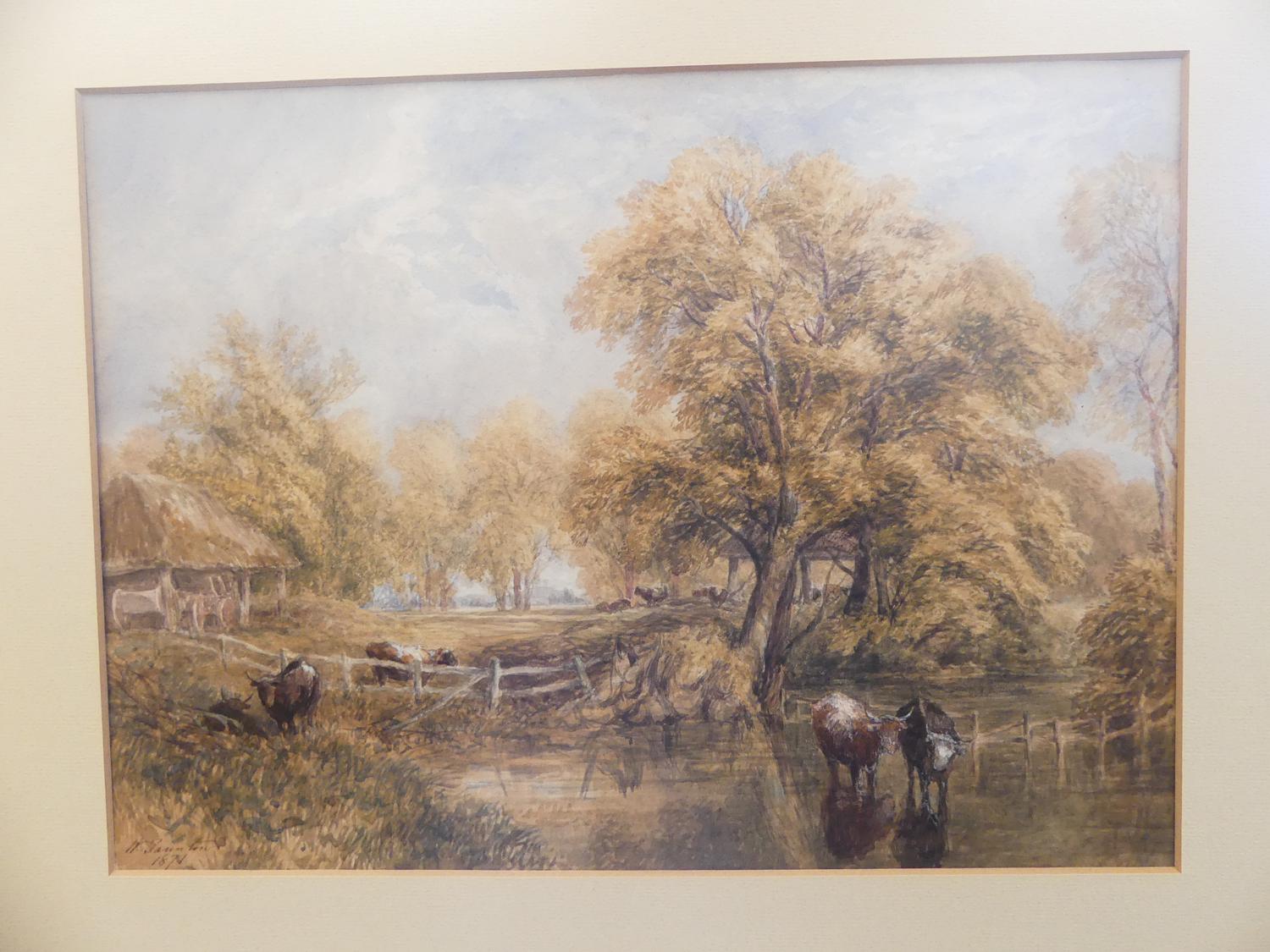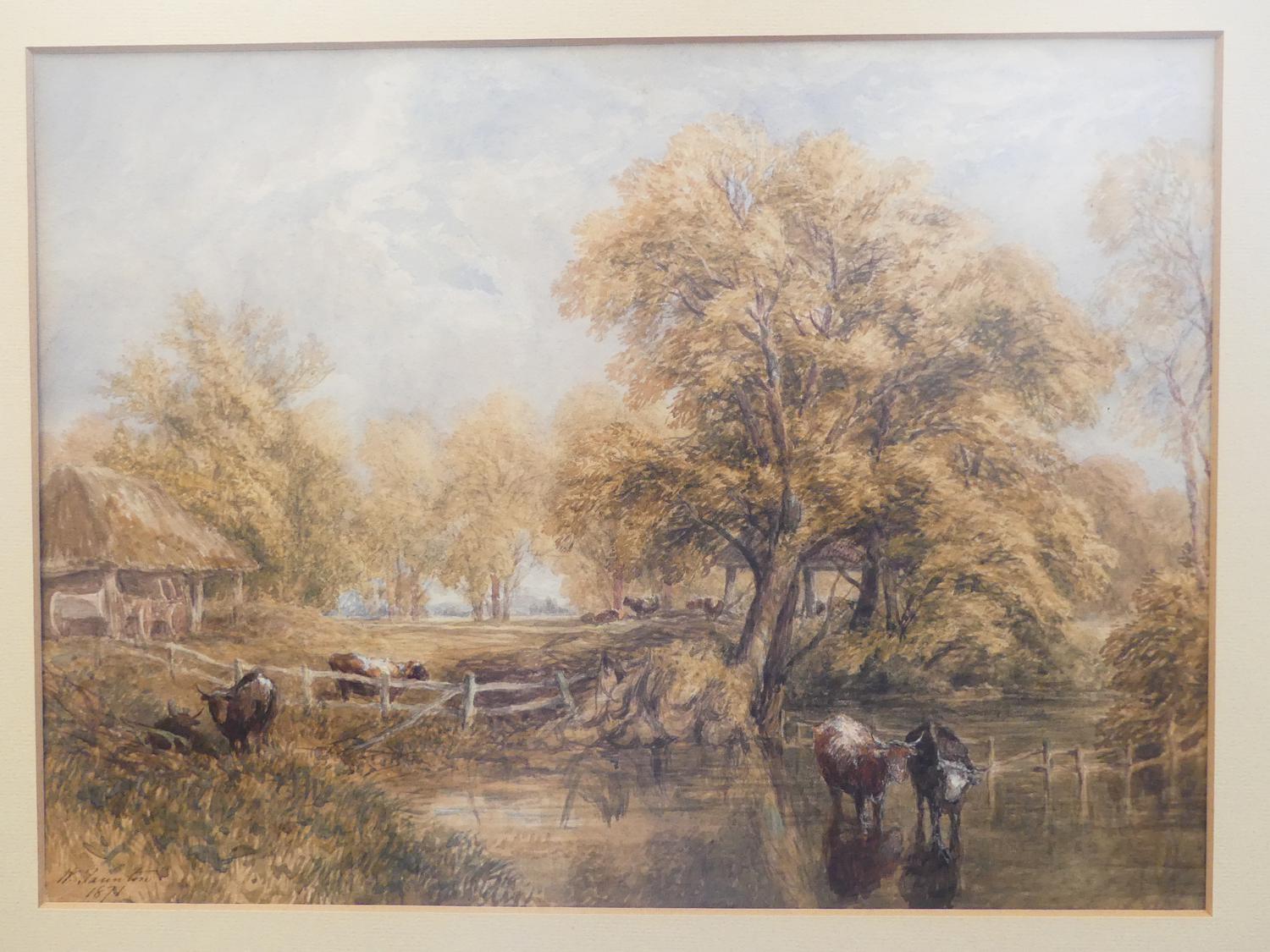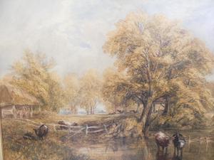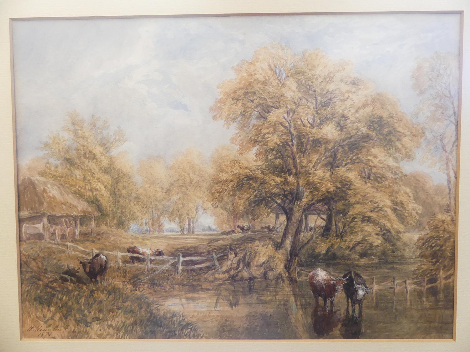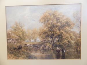 w. taunton, d.1871, watercolour, 10 1/2" x 14", "river scene with cattle"