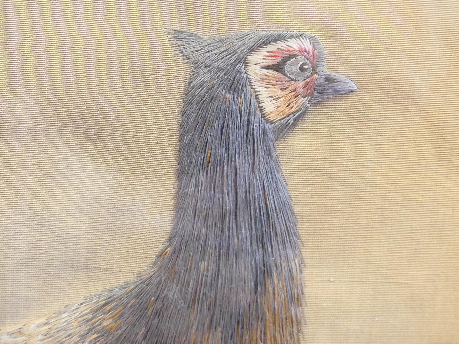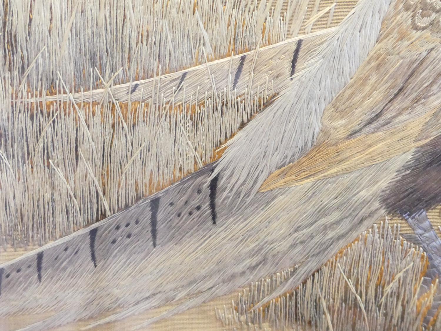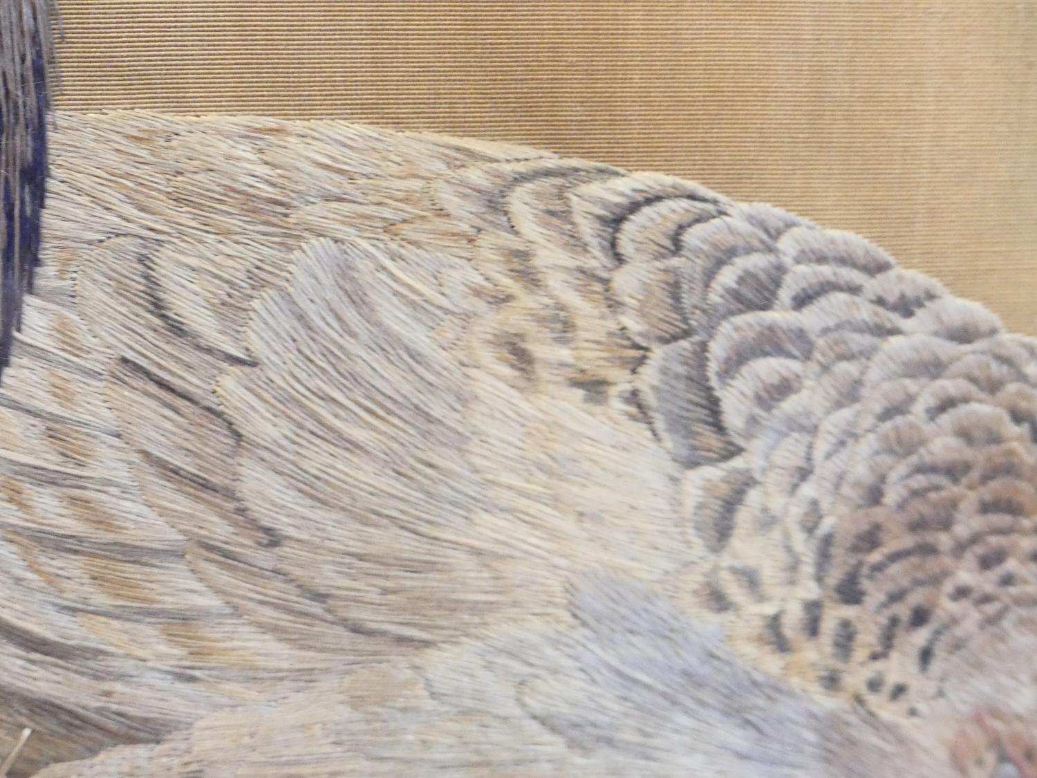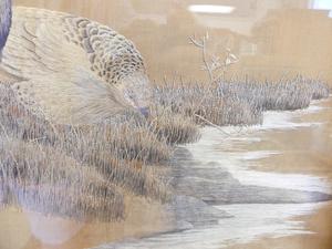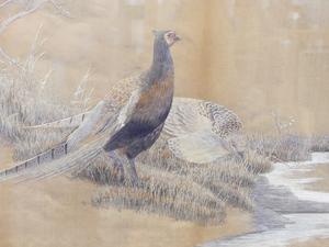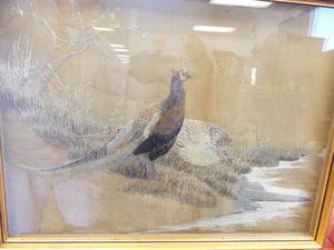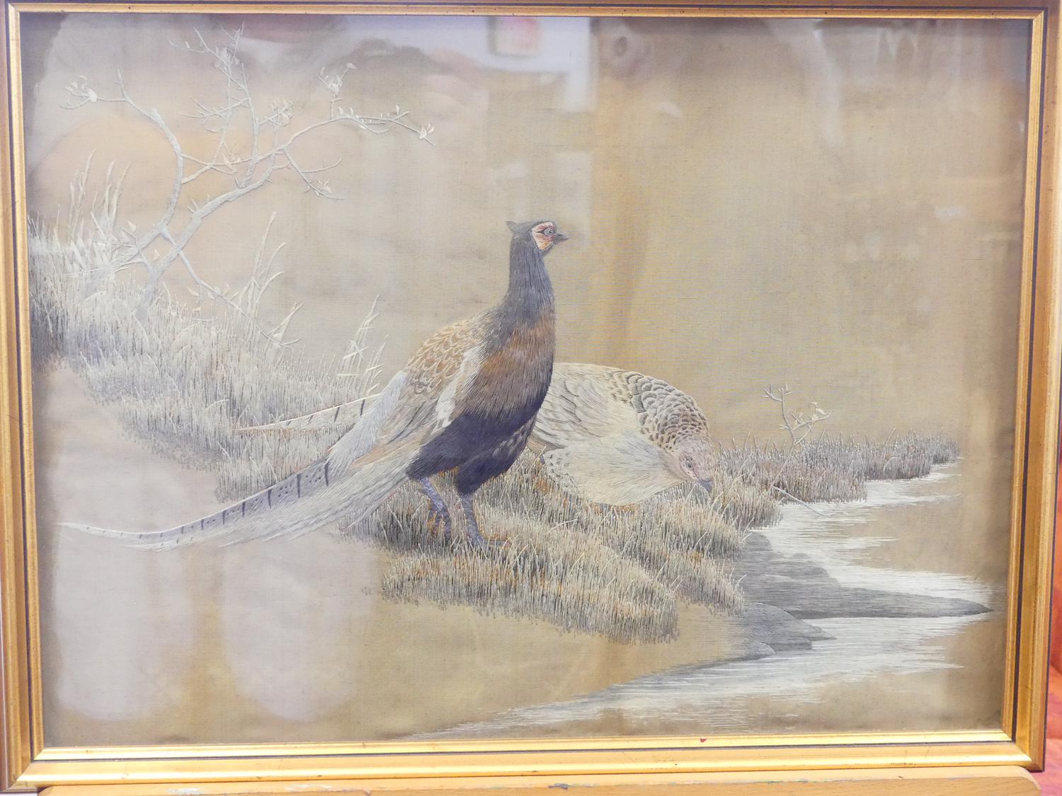 needlework picture of pheasants at waters edge, overall 18" x 24"
