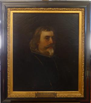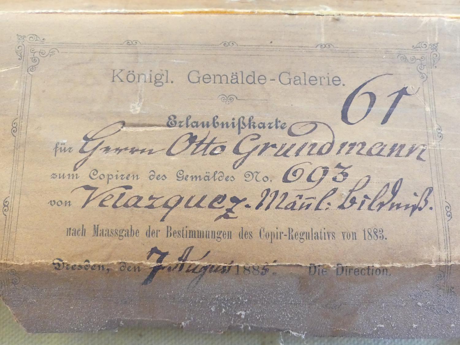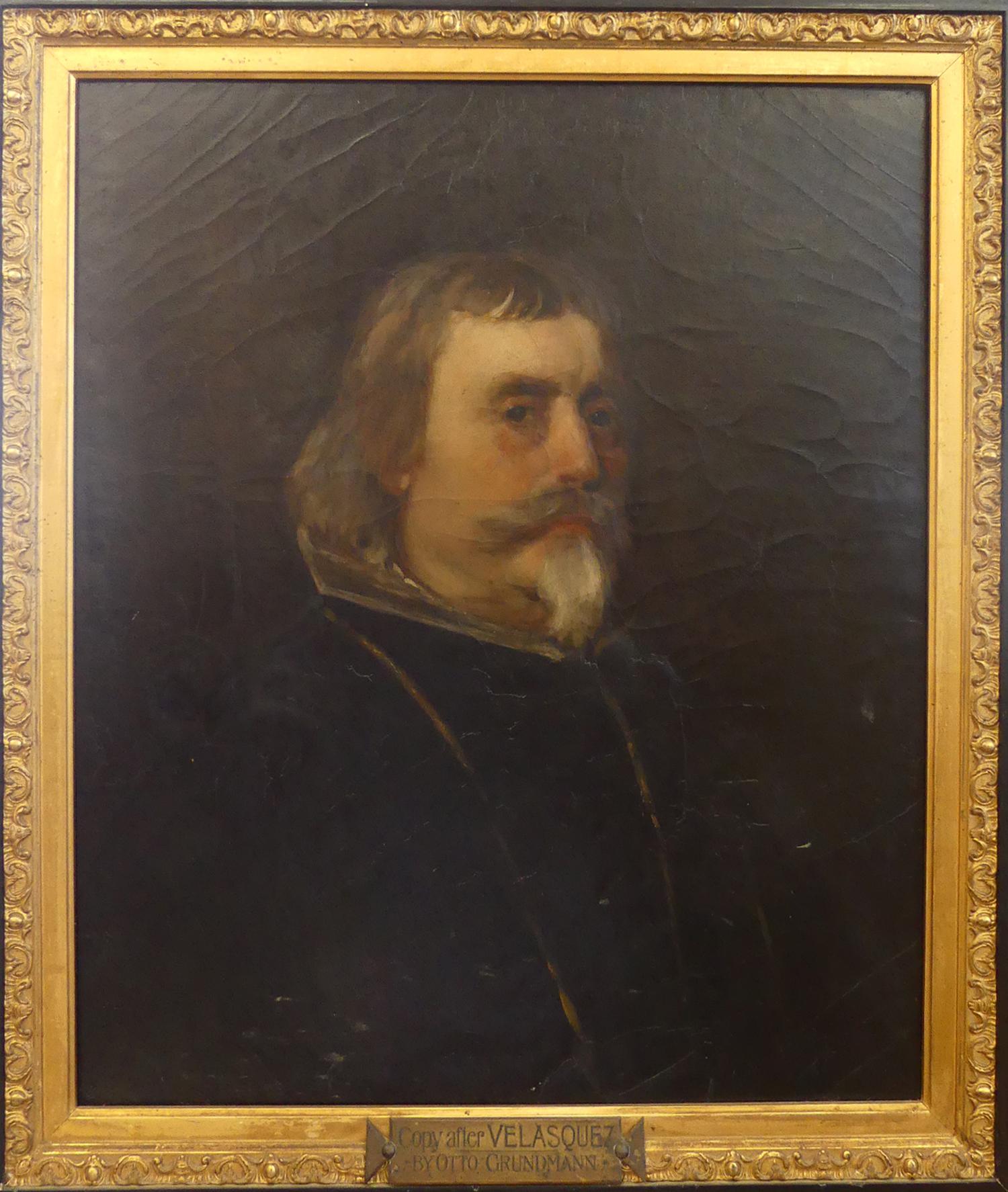 attributed to otto grundmann, after diego velazquez (1599-1660), 27" x 22", "a knight of the order of santiago", label veros dated 1885