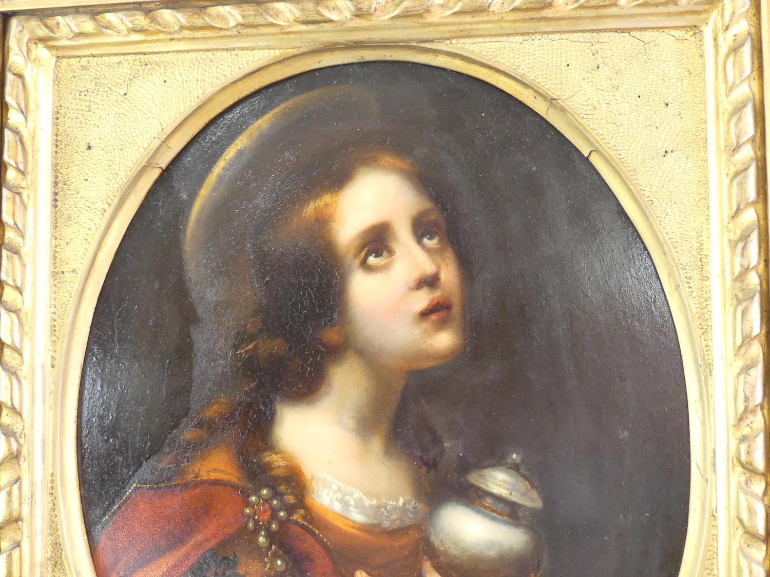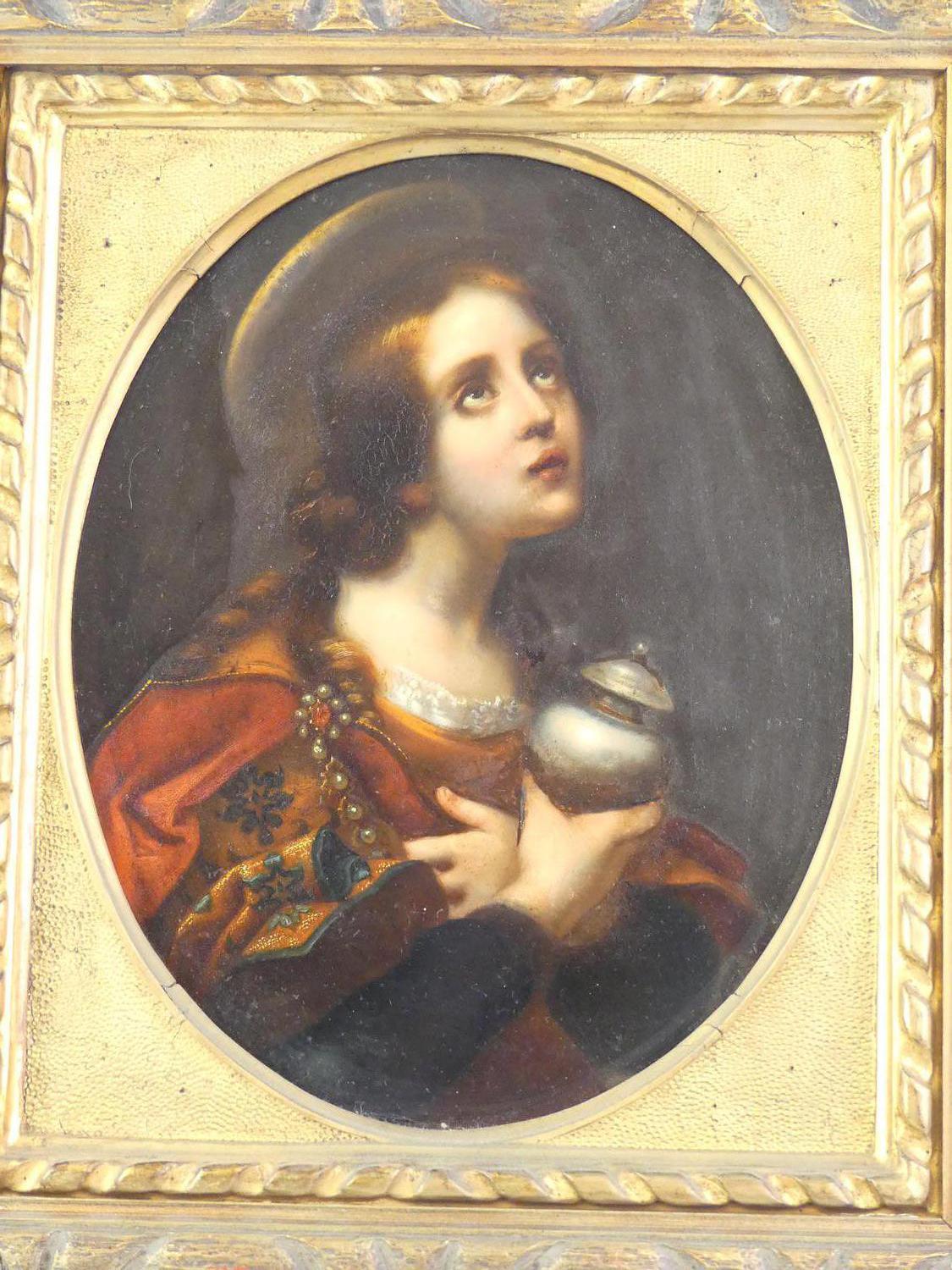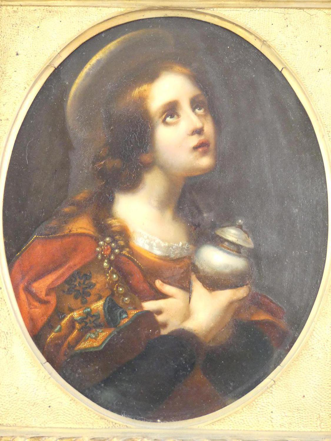 19th century european school after carlo dolci (1616-1686), oil on board, 12" x 10" oval, "maria madelena"