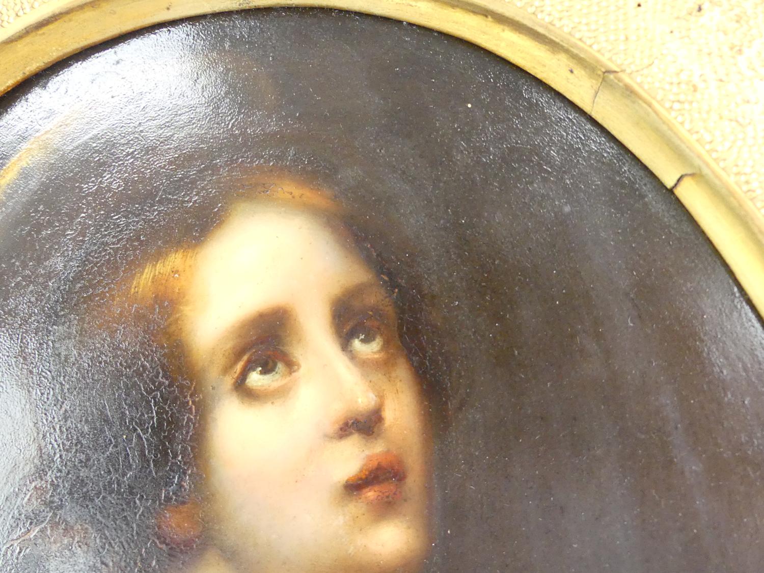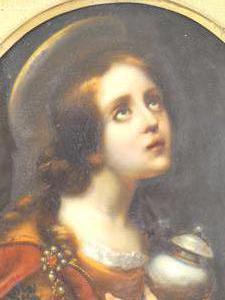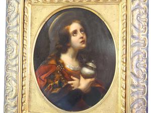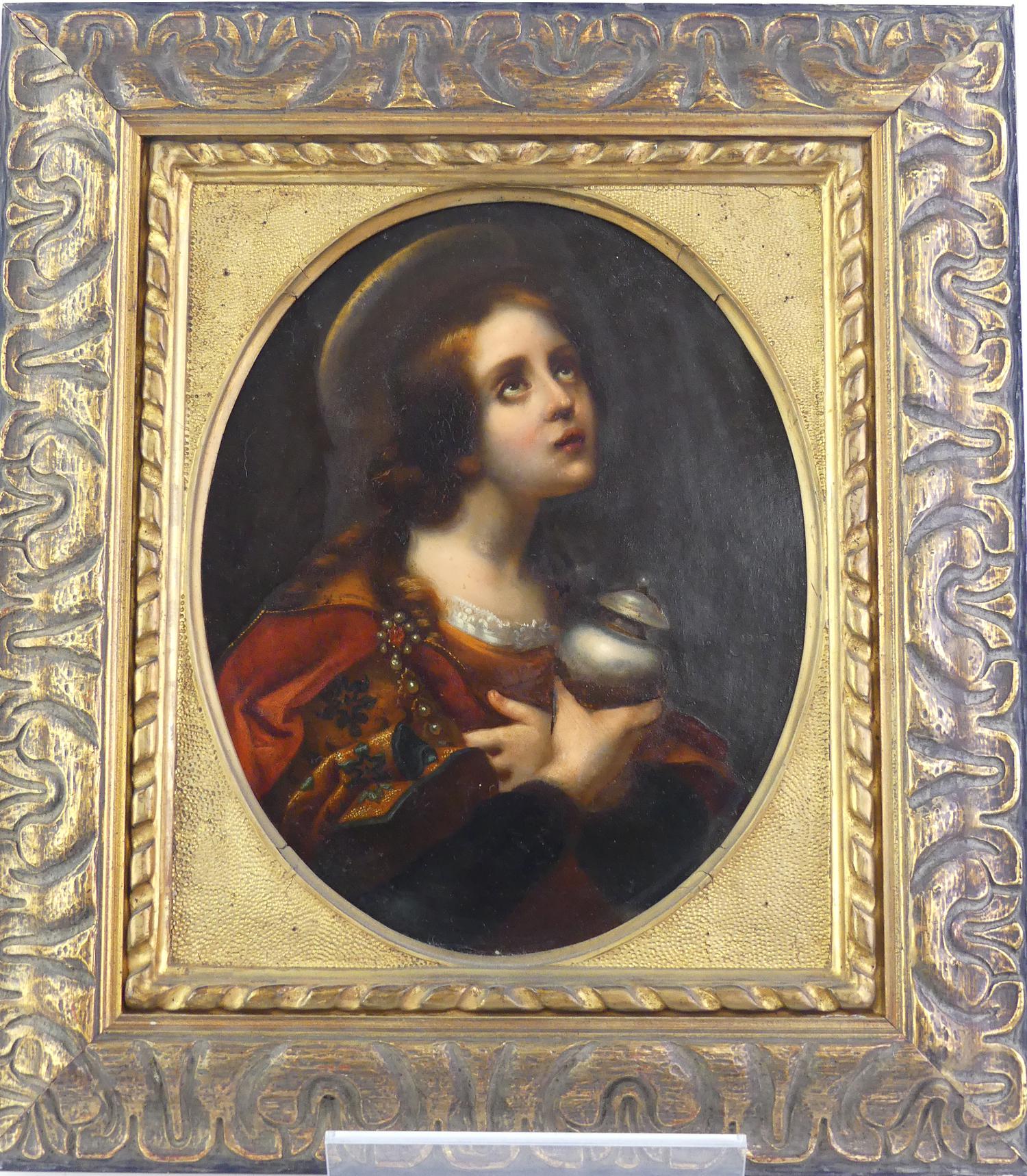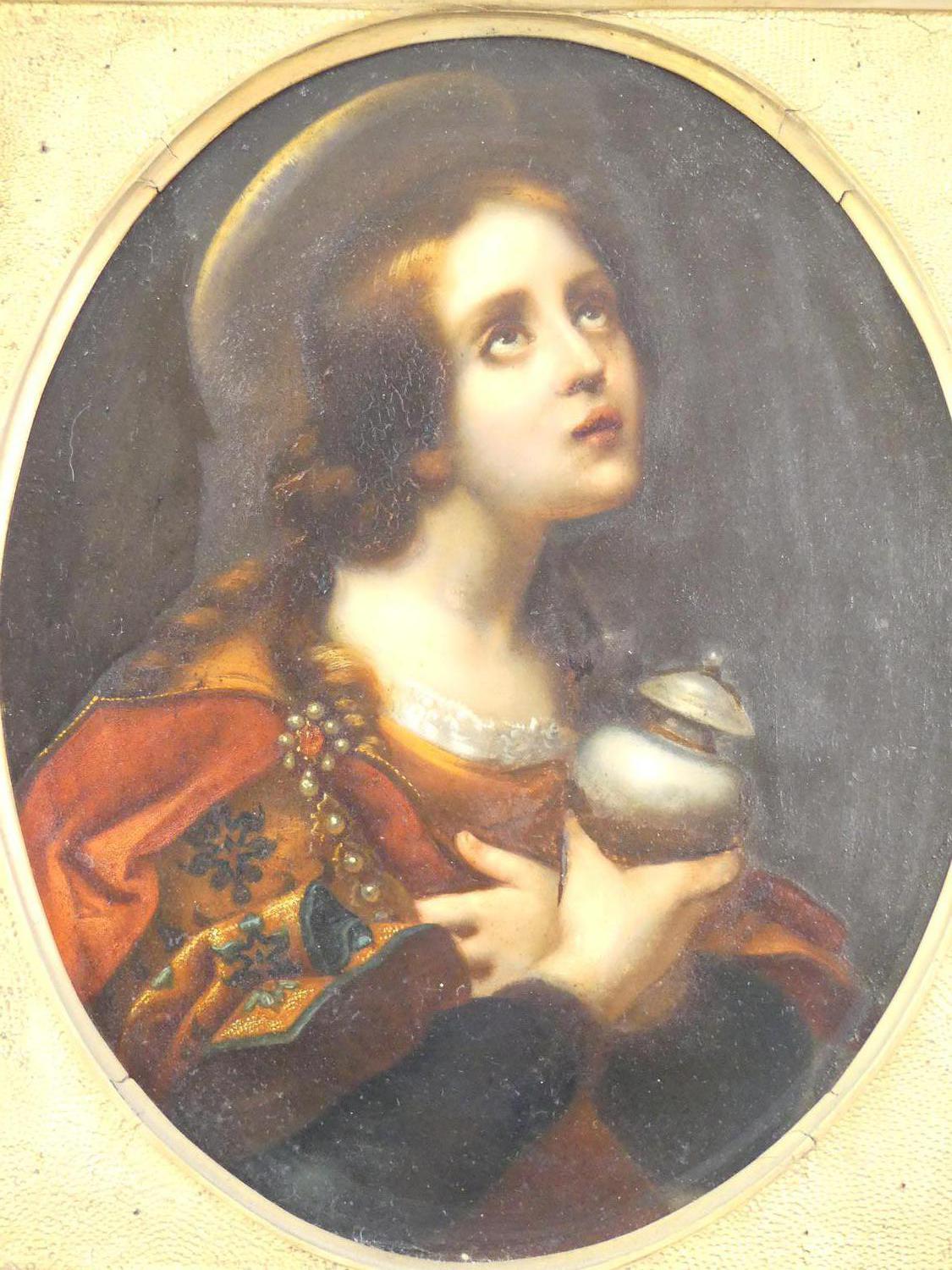 19th century european school after carlo dolci (1616-1686), oil on board, 12" x 10" oval, "maria madelena"