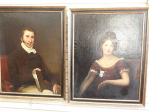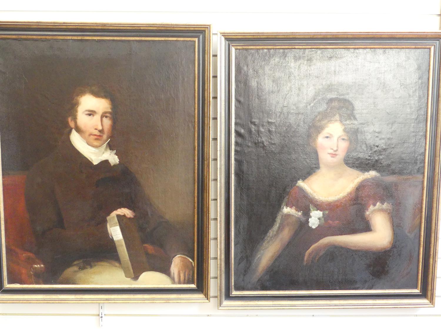 pair of late 19th century portraits, oil on canvas (relined), 36" x 28", " a young gentleman and lady"