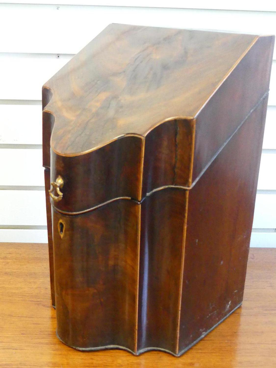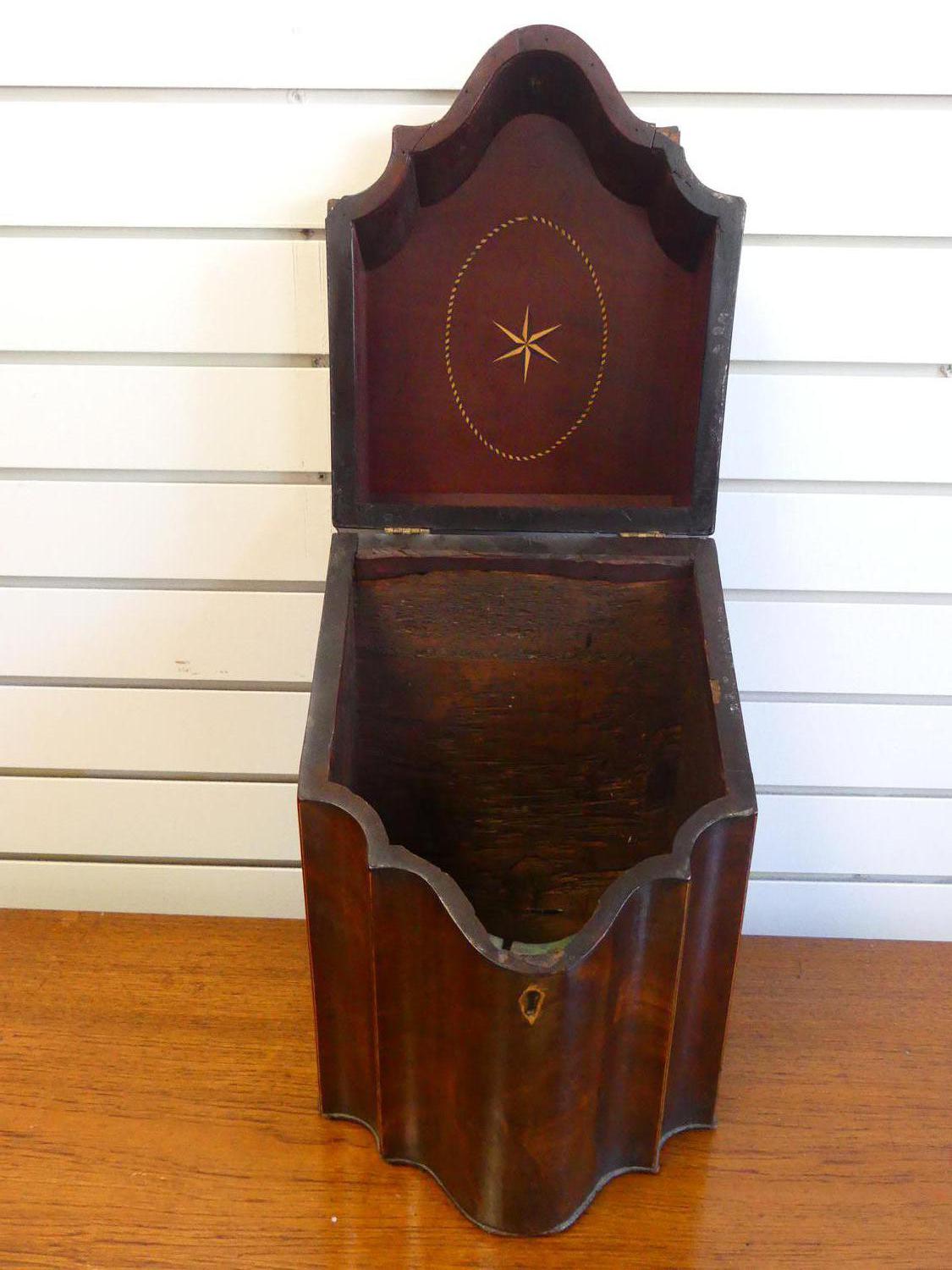 george iii inlaid mahogany knife box, english, early 19th century, 14" x 8 3/4" x 9 1/2"