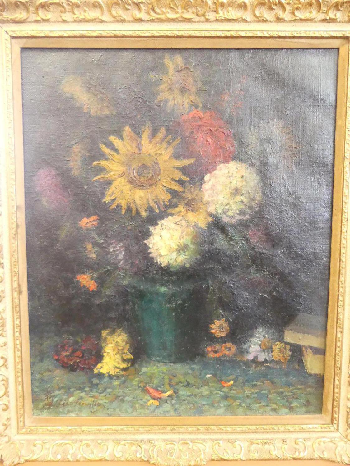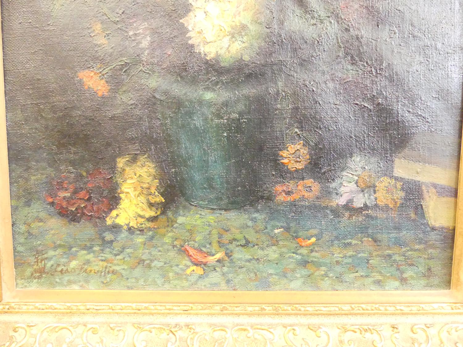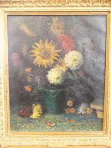 lias pinolfio, late 19th century oil on canvas, 24" x 20" "stillife with blue vase"