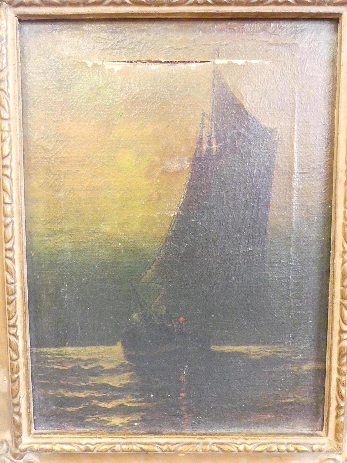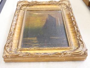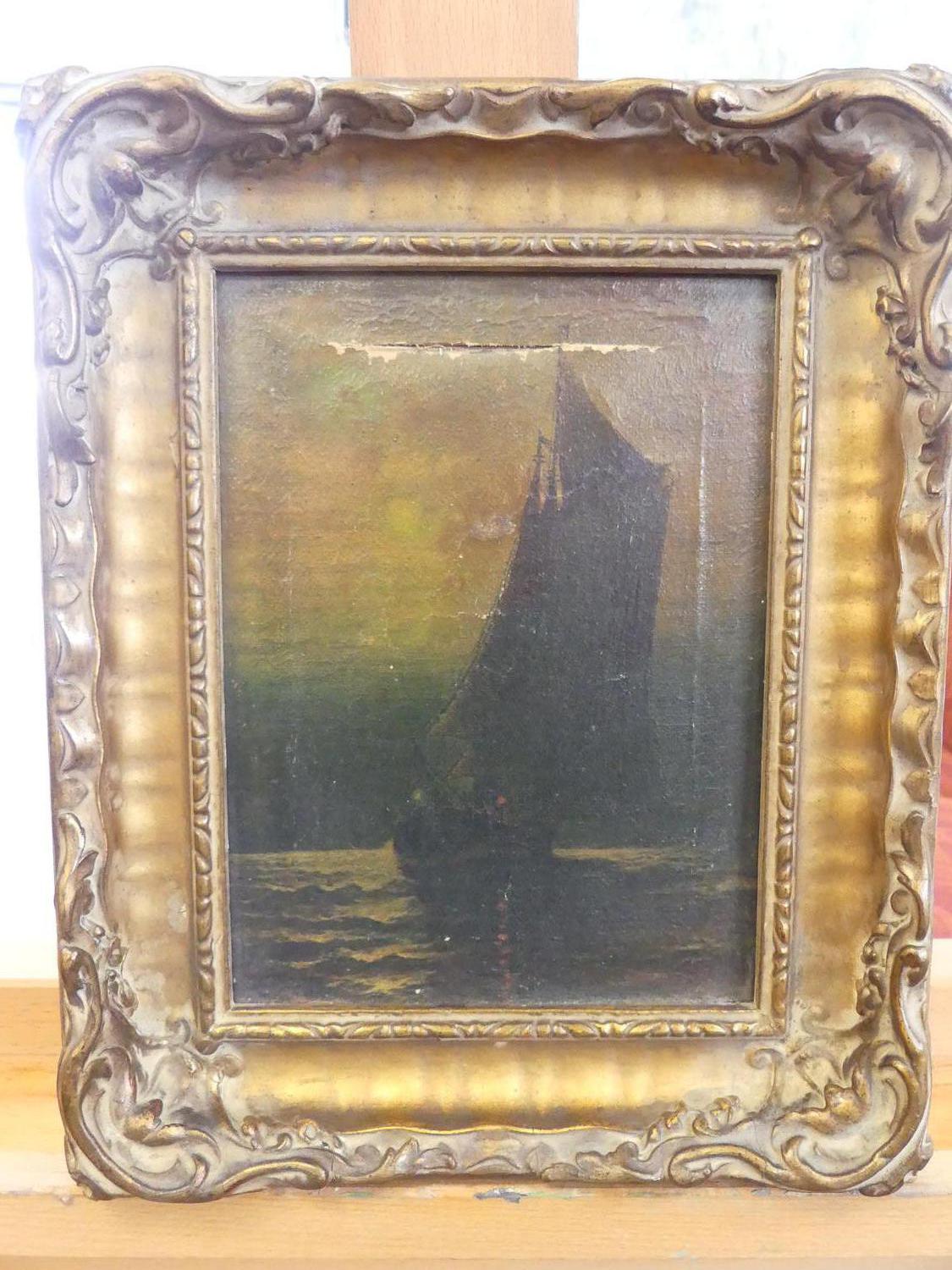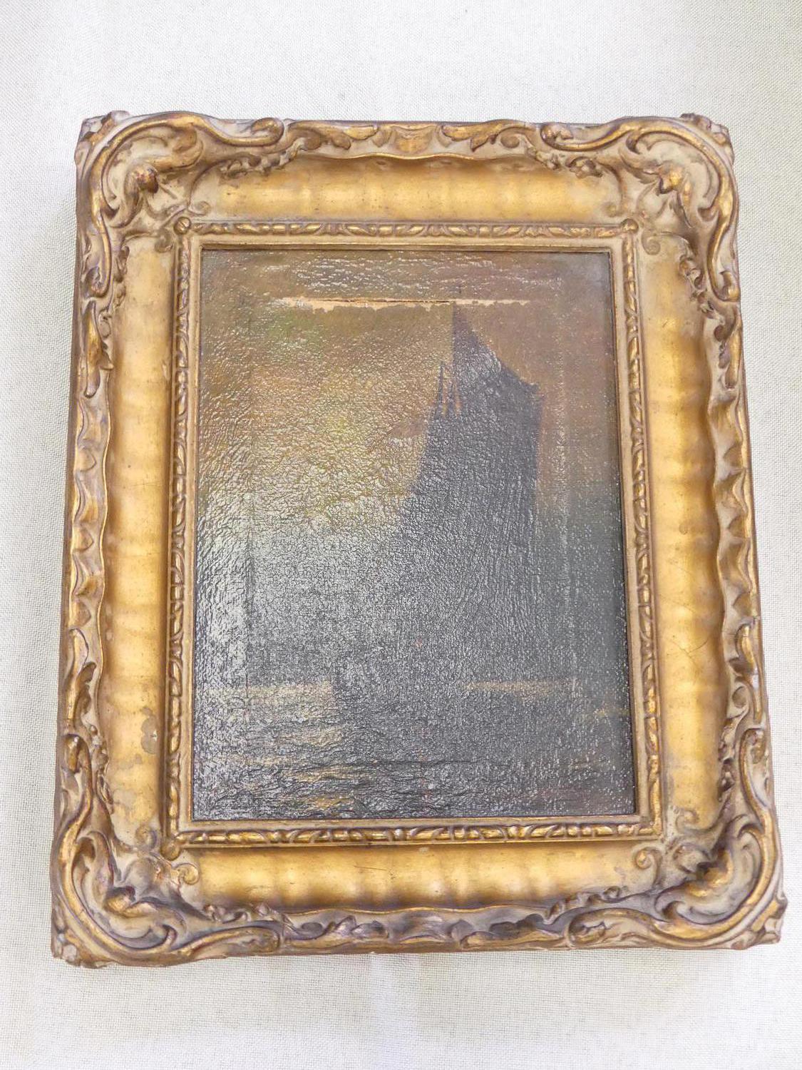 early 20th century gilt gesso frame, 11" x 9", with italian school oil on canvas - damaged
