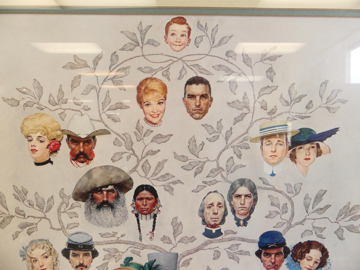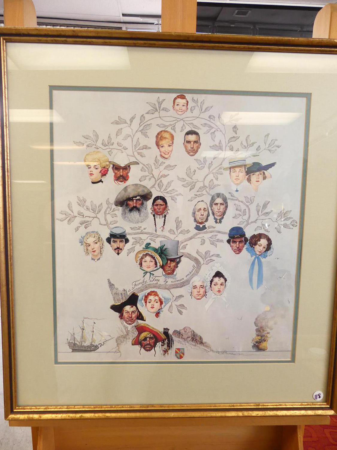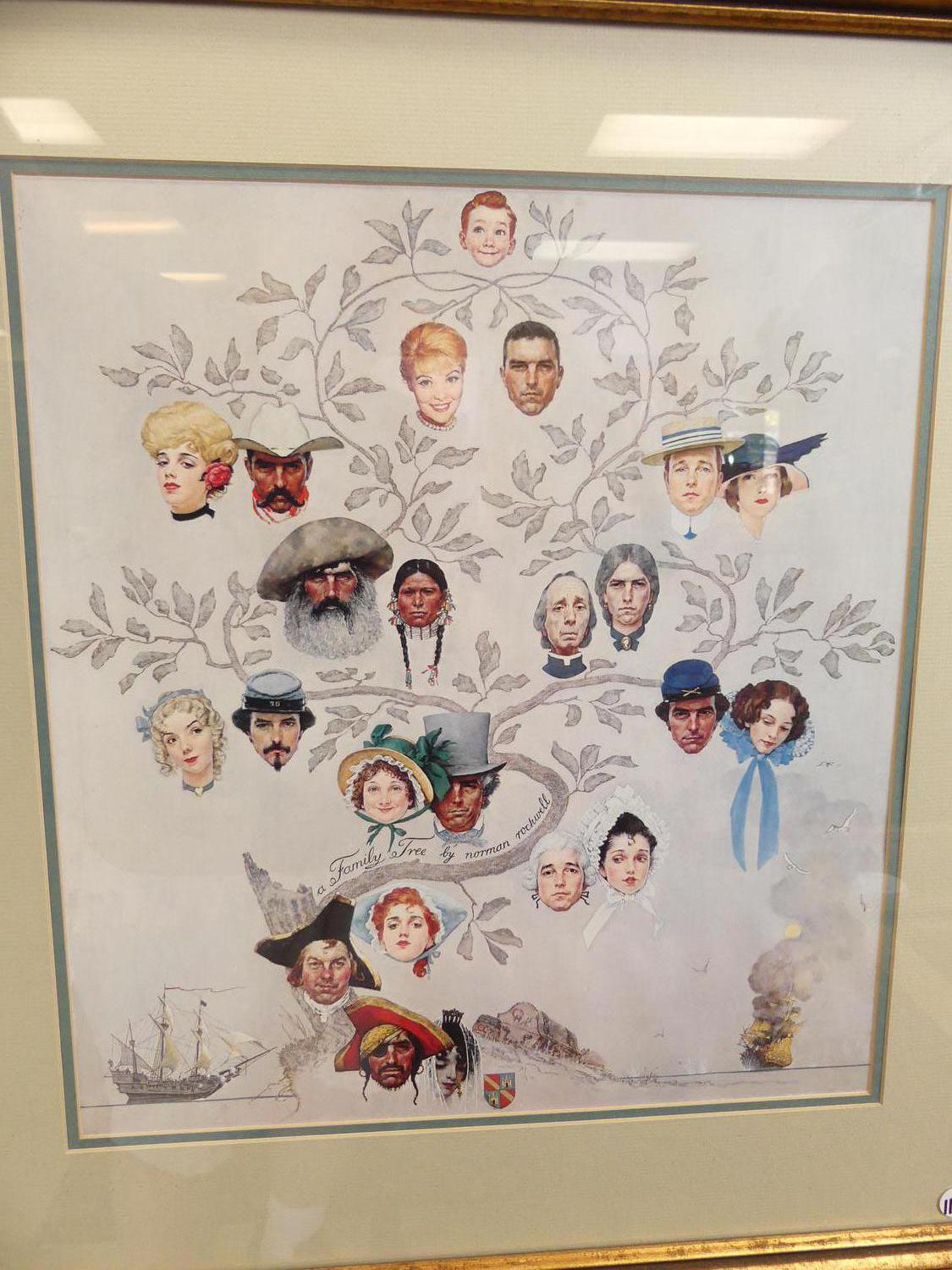 norman rockwell family tree framed print, overall 27" x 24"