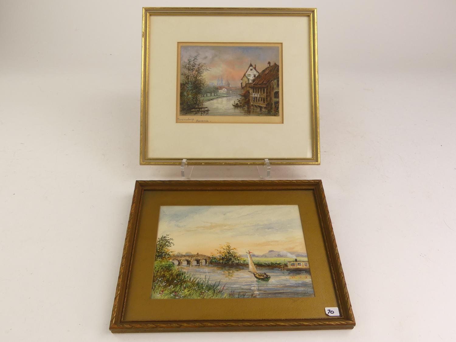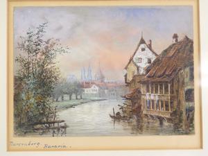 walter james baber (1855-1924), two watercolours, 5 1/2" x 7 1/2", "nuremburg bavaria" & 6 3/4" x 9 1/2", "european canal"