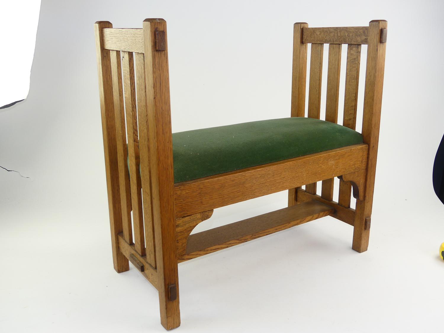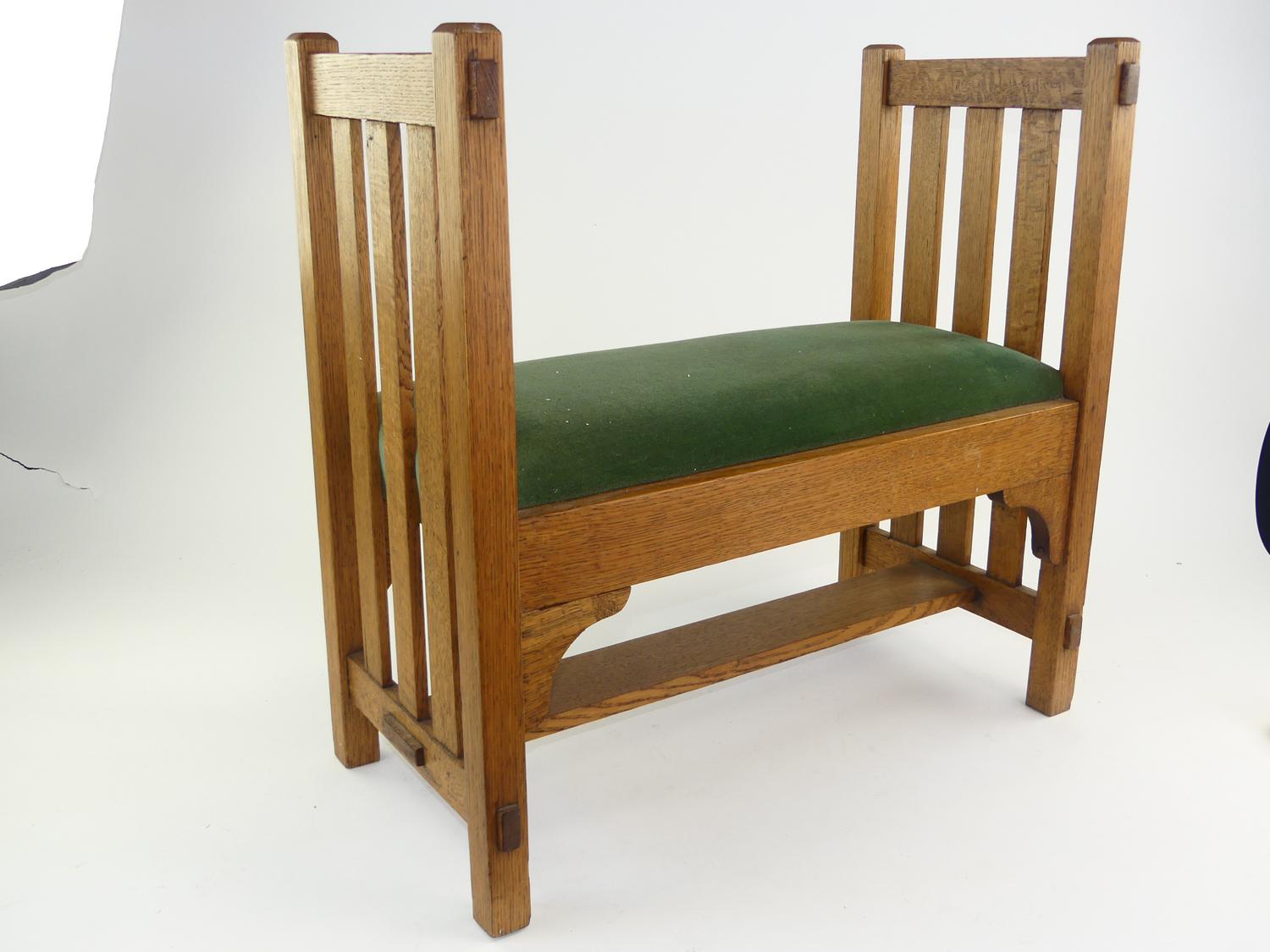 arts and crafts oak bench, circa 1900, 28" x 28 1/4" x 15"
