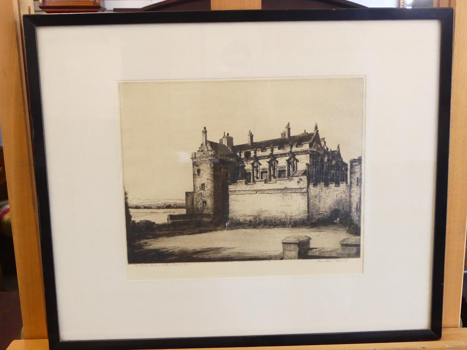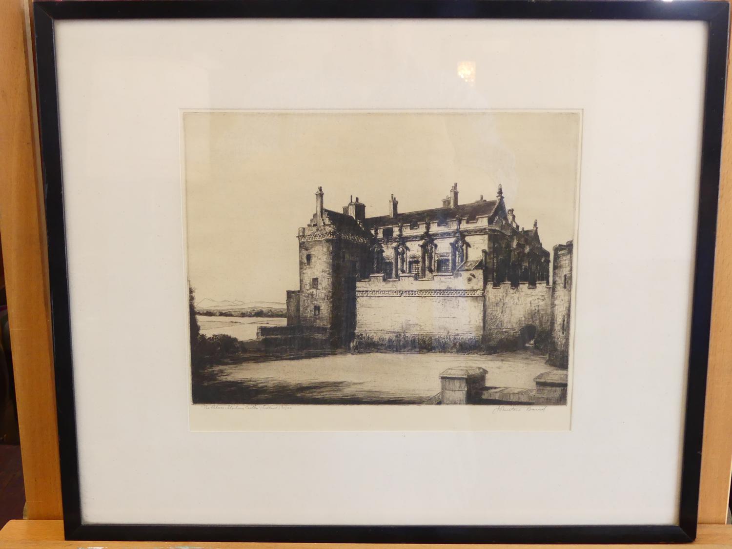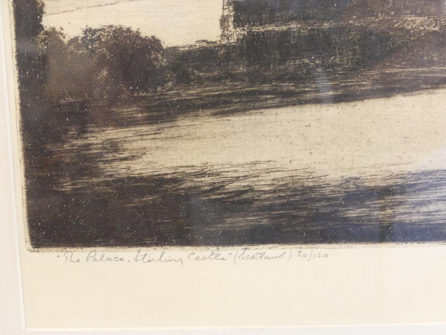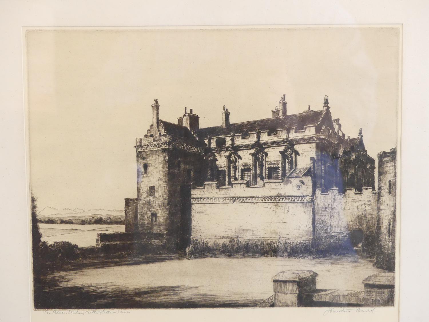 johnston baird (1872-?), etching #20/120, 9" x 11 1/2", "the palace, sterling castle, scotland"