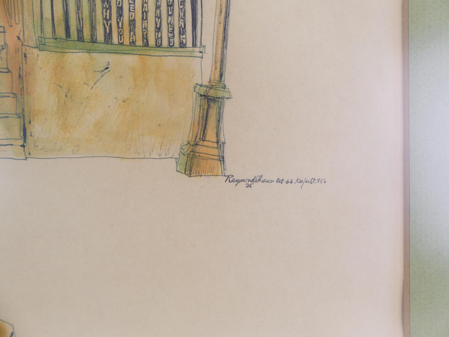 raymond chow (b.1941), ink and watercolour, 17" x 12", "856 keefer st. (vancouver)"
