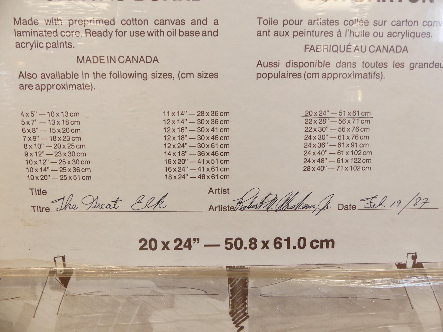 robert m. abraham jr., d.1987, acrylic on board, 24" x 20", "the great elk"