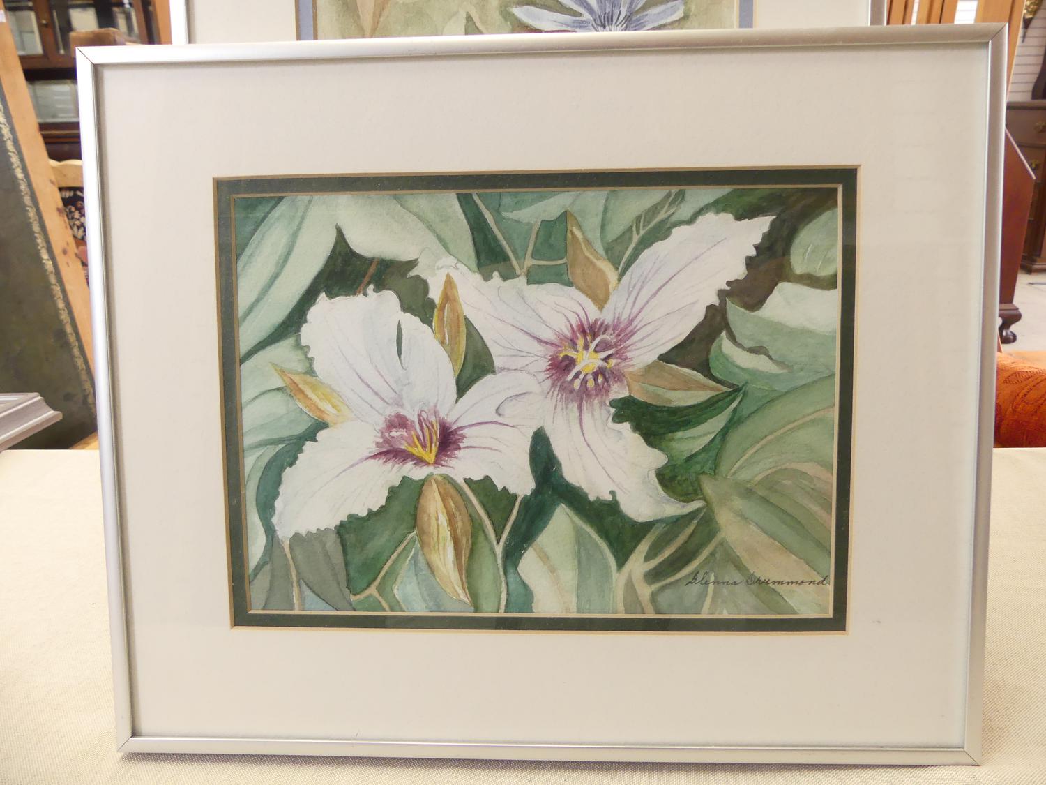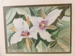 glenna drummond, 2 watercolours, 10" x 7", "painted trillium" & "along the roadway"