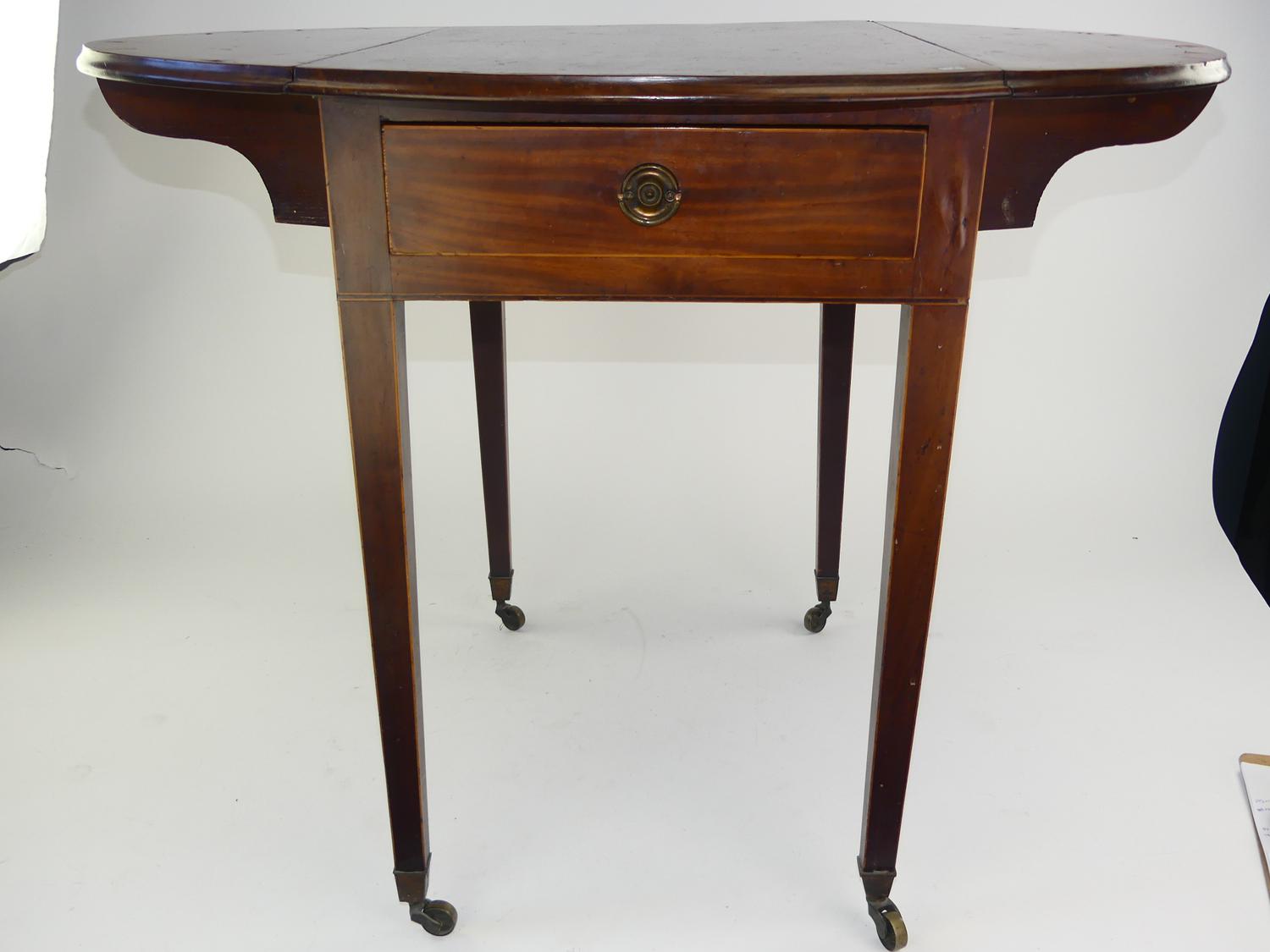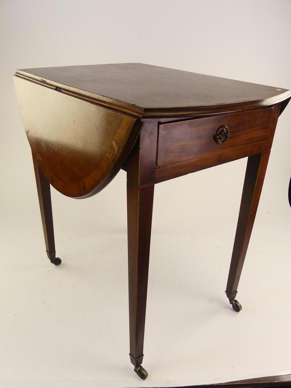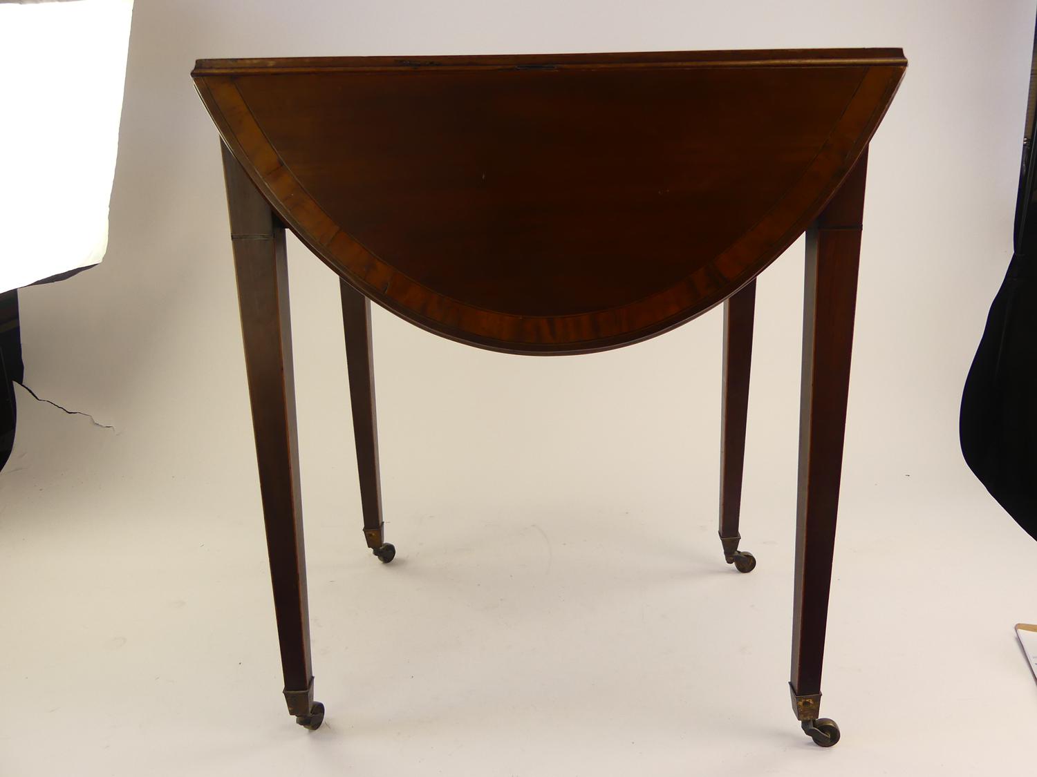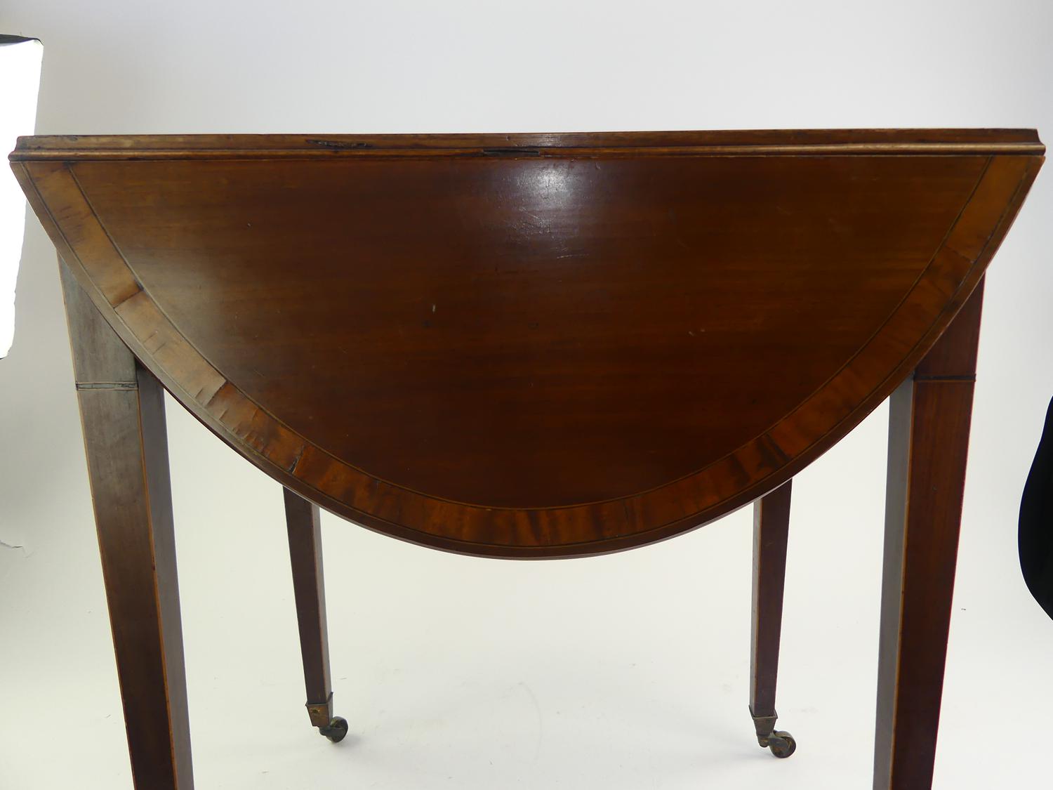 george iii inlaid mahogany drop leaf table, english cira 1820, 28" x 38" x 24 1/2"