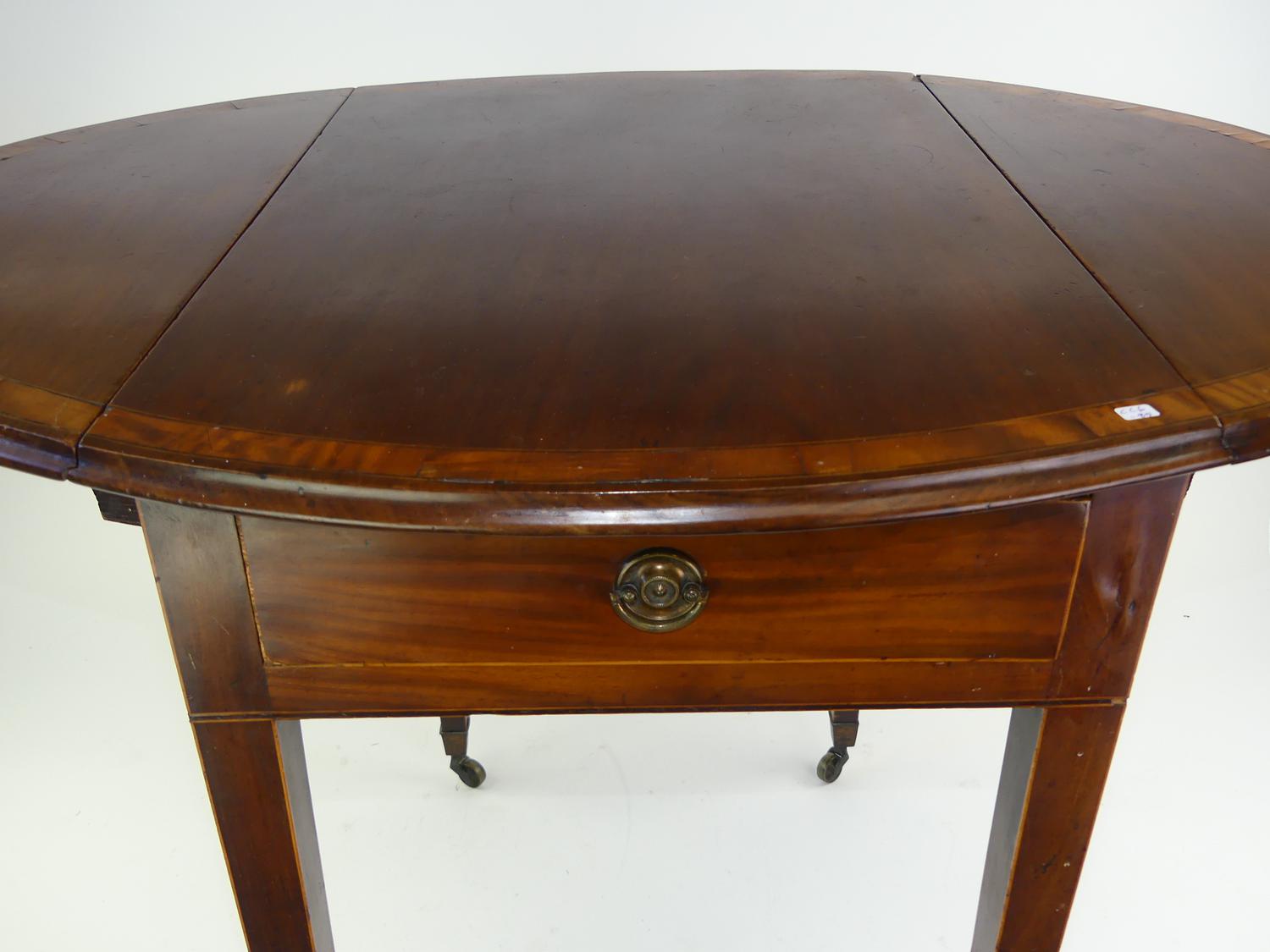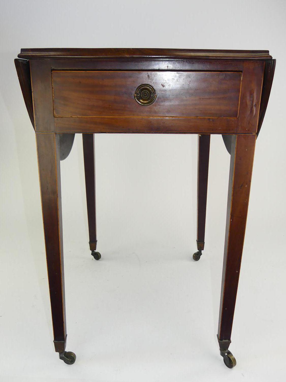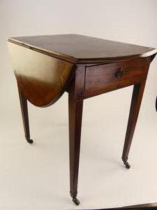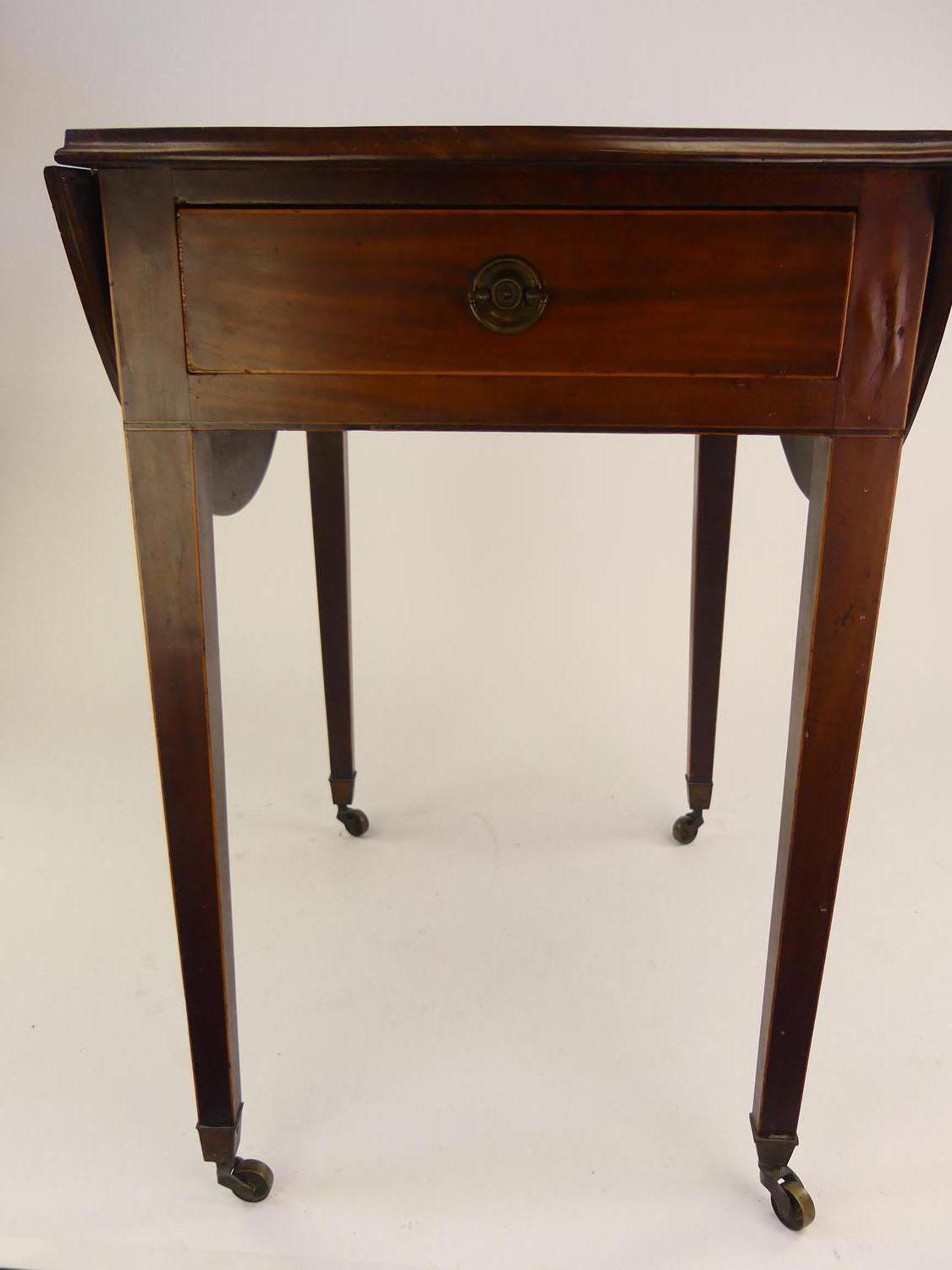 george iii inlaid mahogany drop leaf table, english cira 1820, 28" x 38" x 24 1/2"