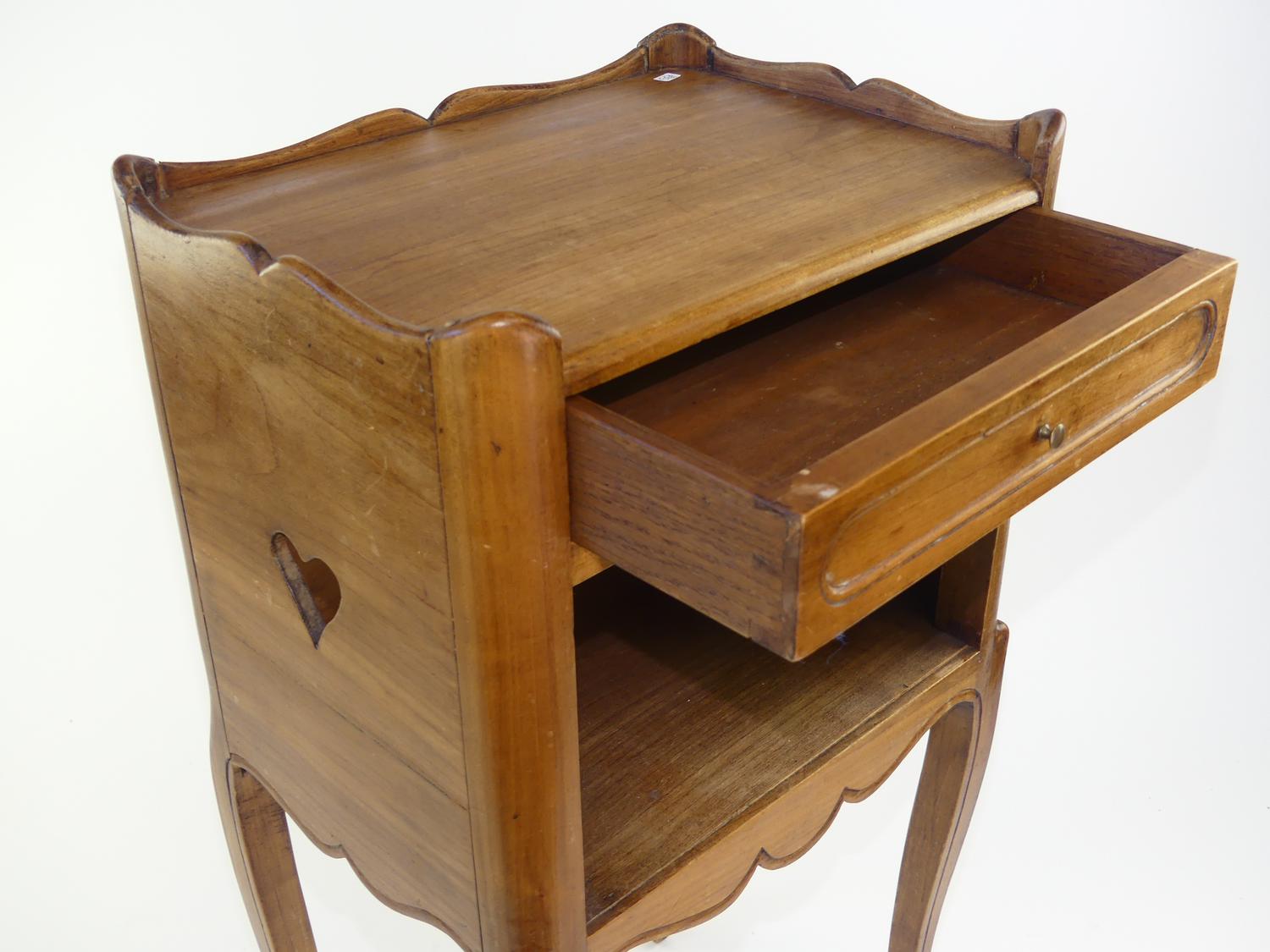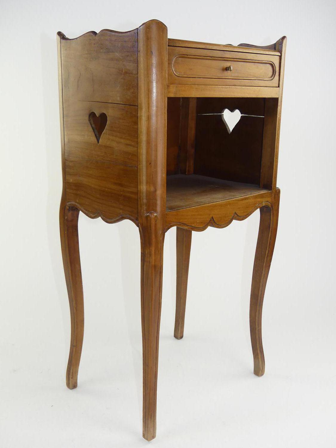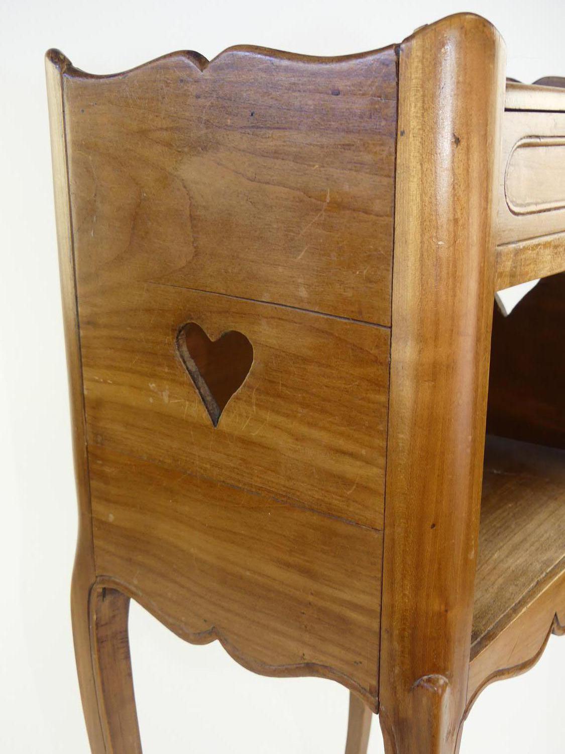 french single drawer side table with heart shaped accents, early 20th century, 28 1/4" x 14" x 10 1/2"